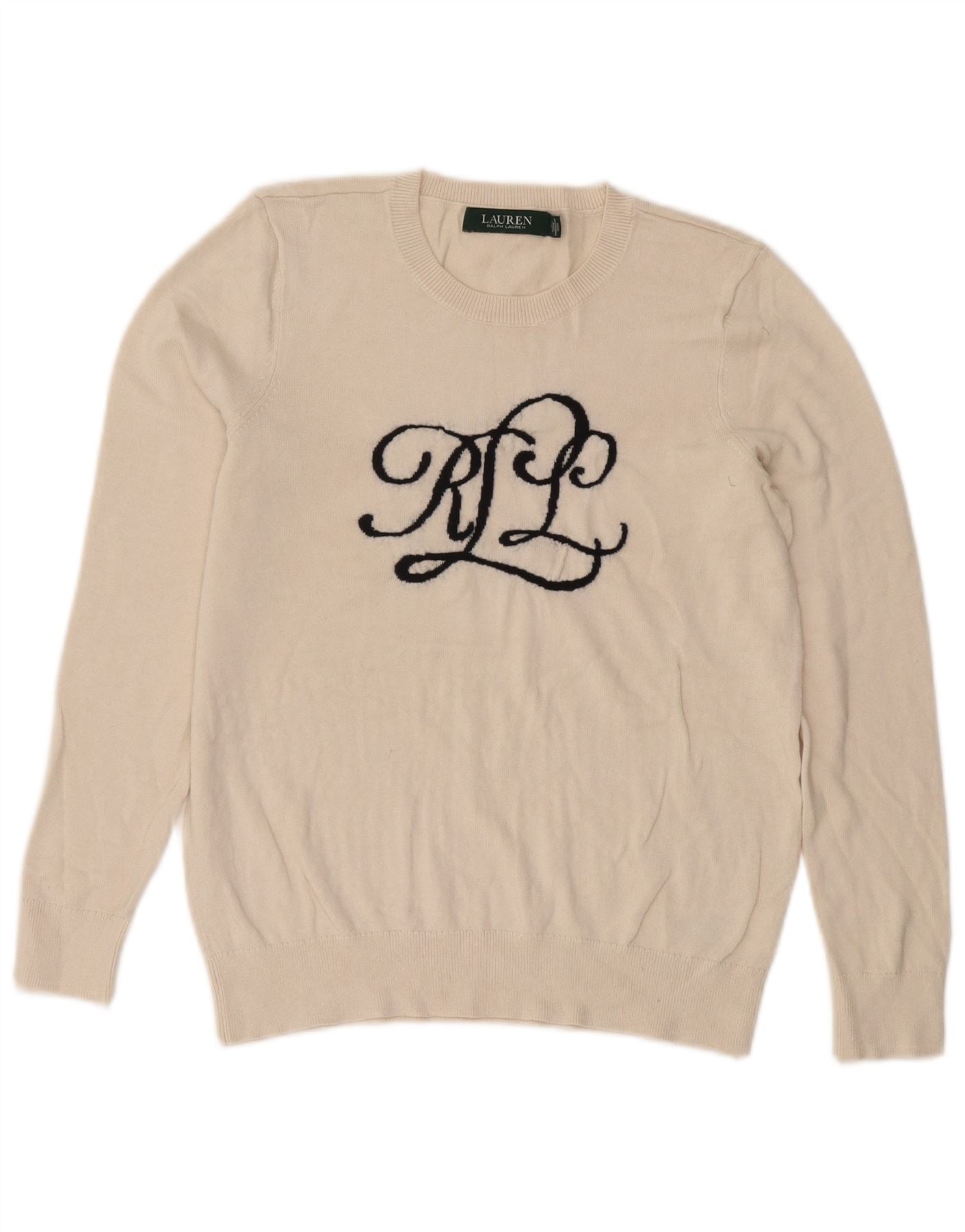 RALPH LAUREN Womens Crew Neck Jumper Sweater UK 14 Medium Off White