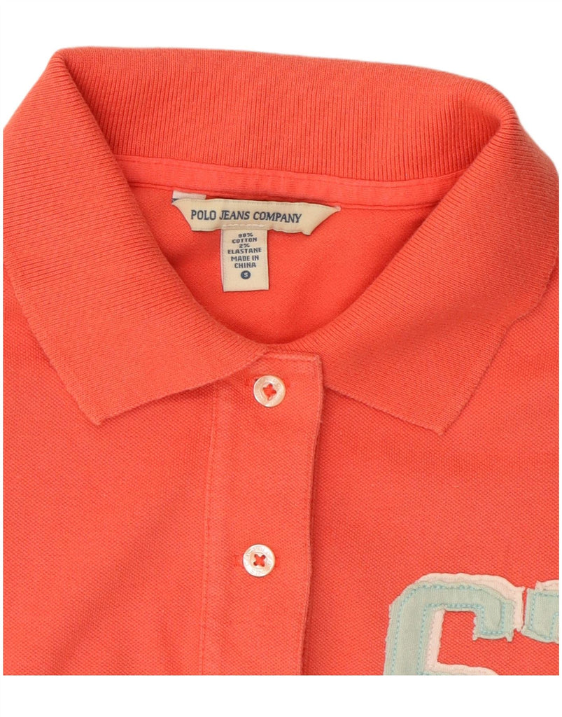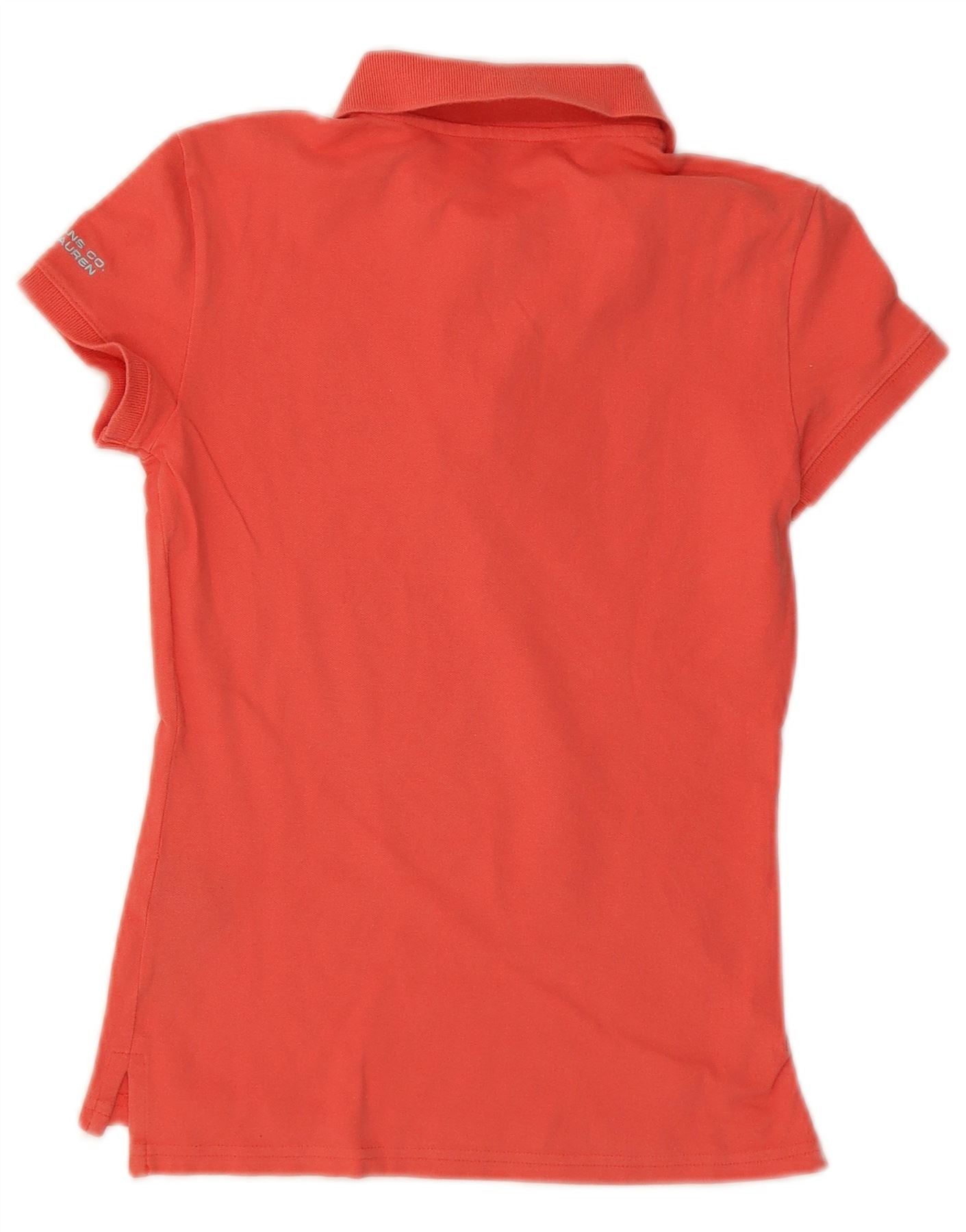RALPH LAUREN Womens Graphic Polo Shirt UK 8 Small Orange Cotton