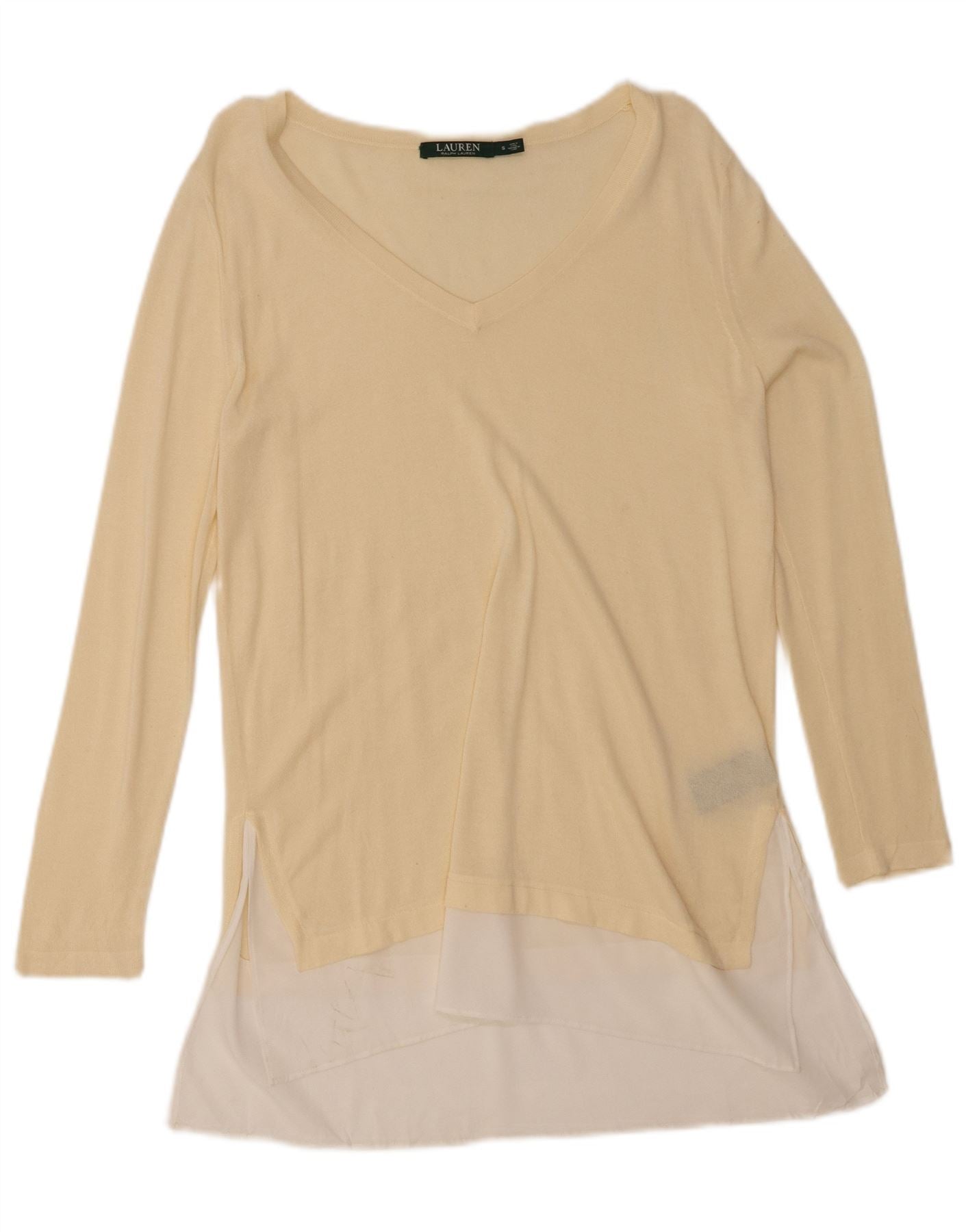 RALPH LAUREN Womens Long Sleeve Jumper Dress UK 10 Small Beige Colourblock