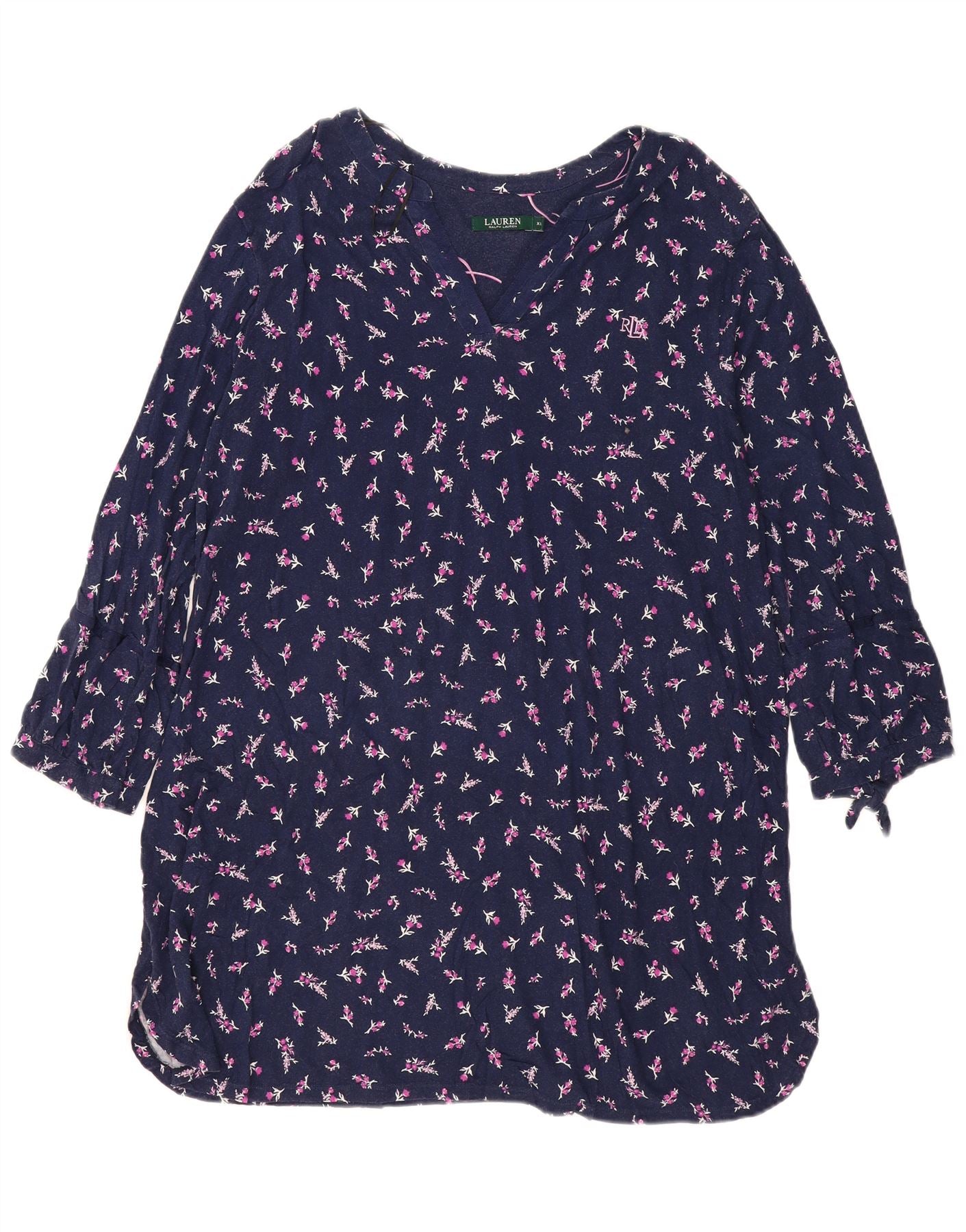 RALPH LAUREN Womens Long Sleeve Tent Dress UK 18 XL Navy Blue Floral