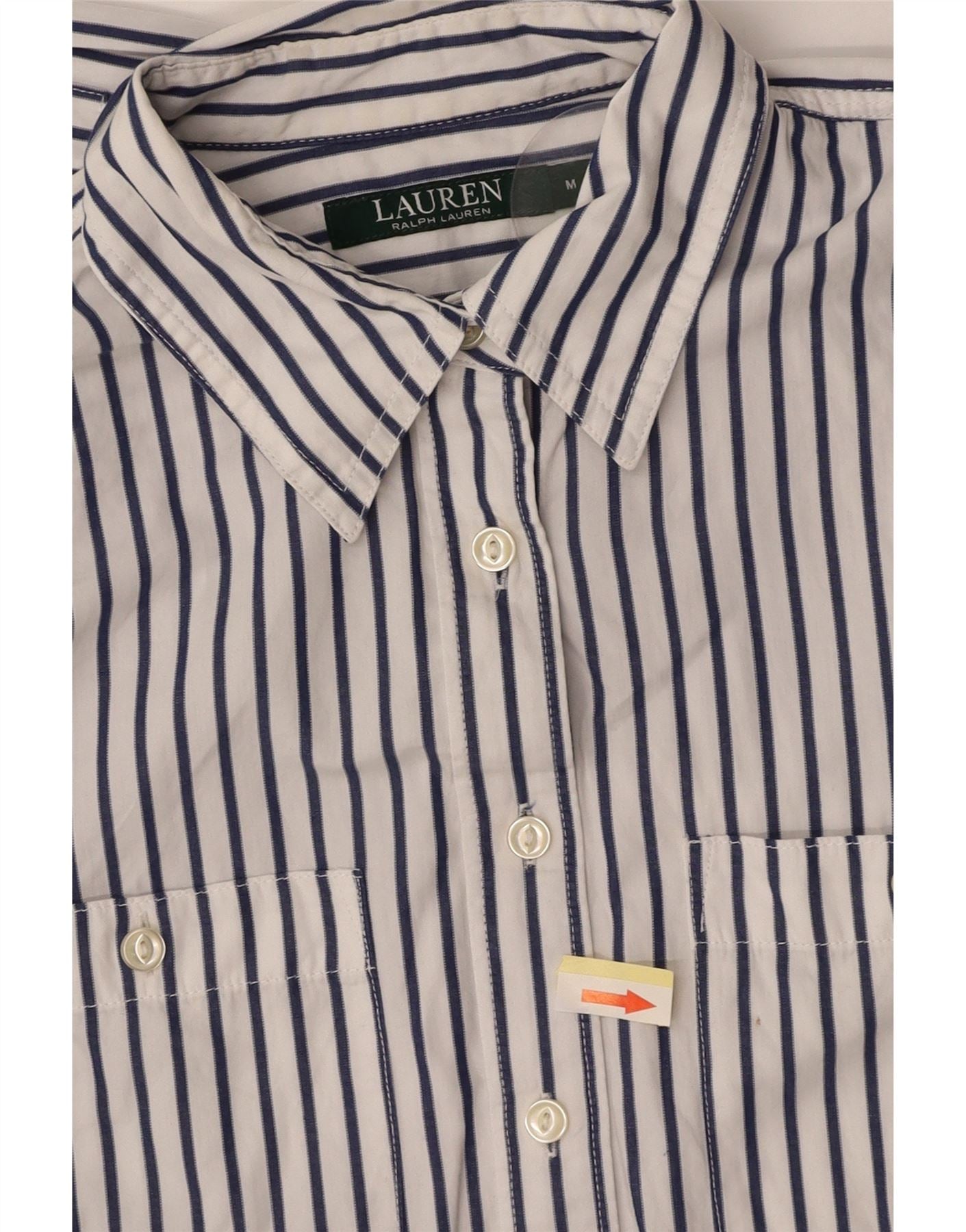 RALPH LAUREN Womens Shirt UK 14 Medium White Pinstripe Cotton