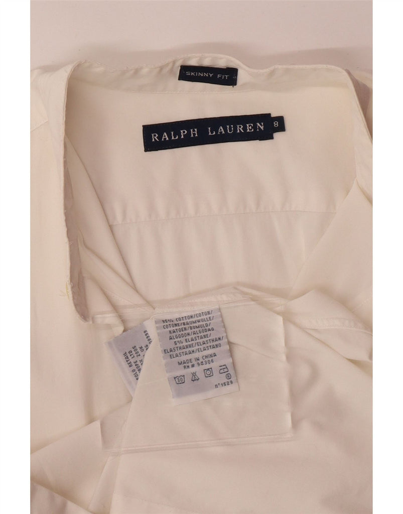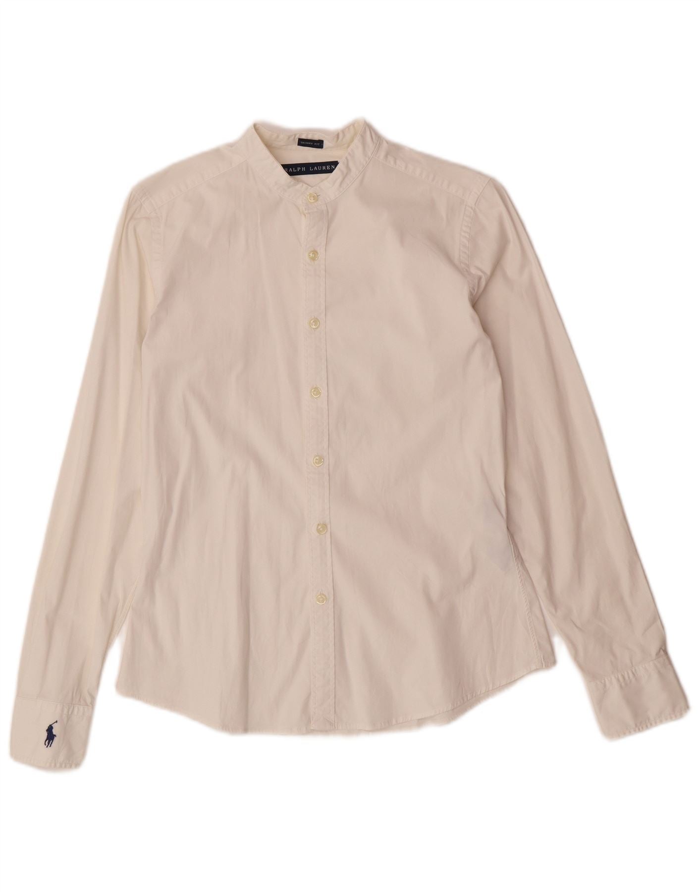 RALPH LAUREN Womens Skinny Fit Shirt US 8 Medium Off White Cotton