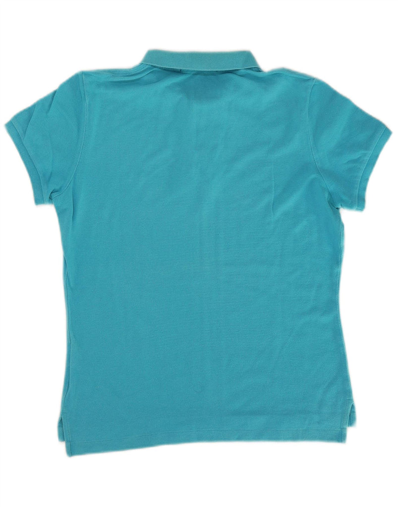 RALPH LAUREN Womens Skinny Polo Shirt UK 14 Large Blue Cotton