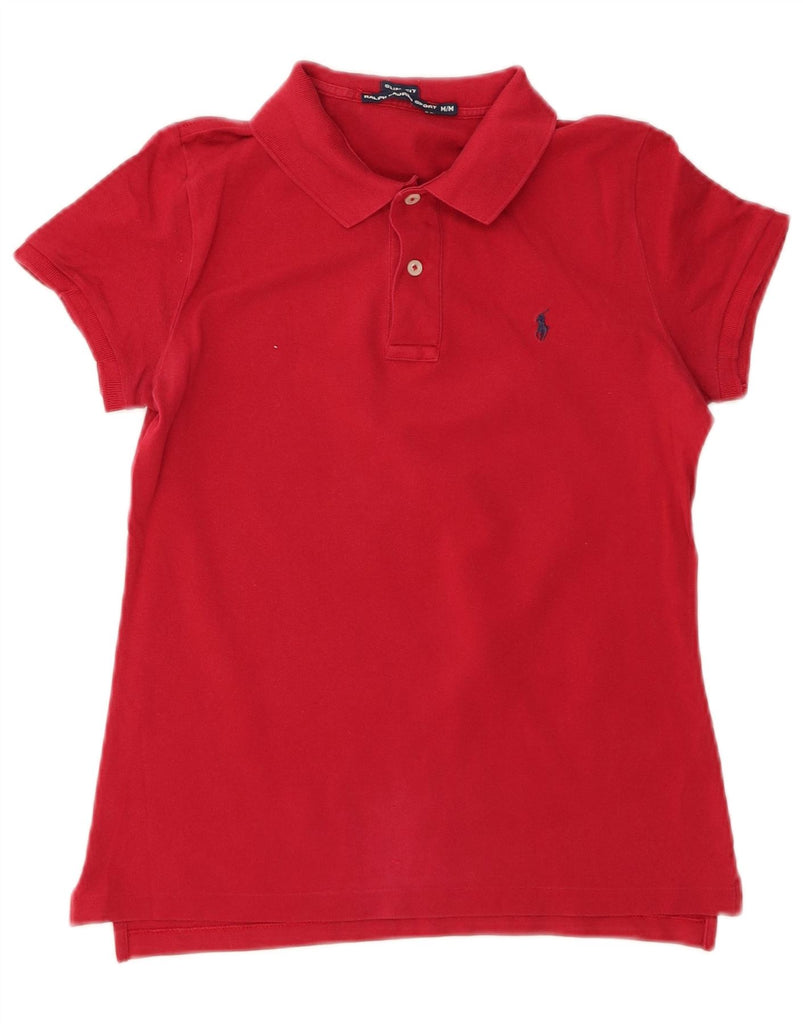 RALPH LAUREN Womens Slim Fit Polo Shirt UK 12 Medium Red Cotton
