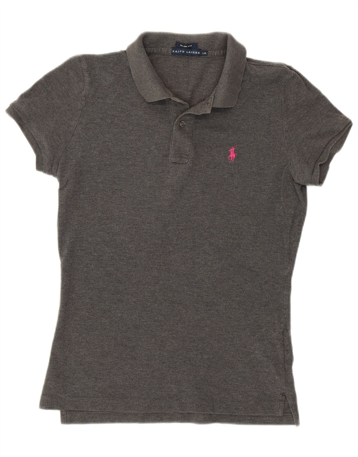RALPH LAUREN Womens Slim Fit Polo Shirt UK 14 Large Grey Cotton
