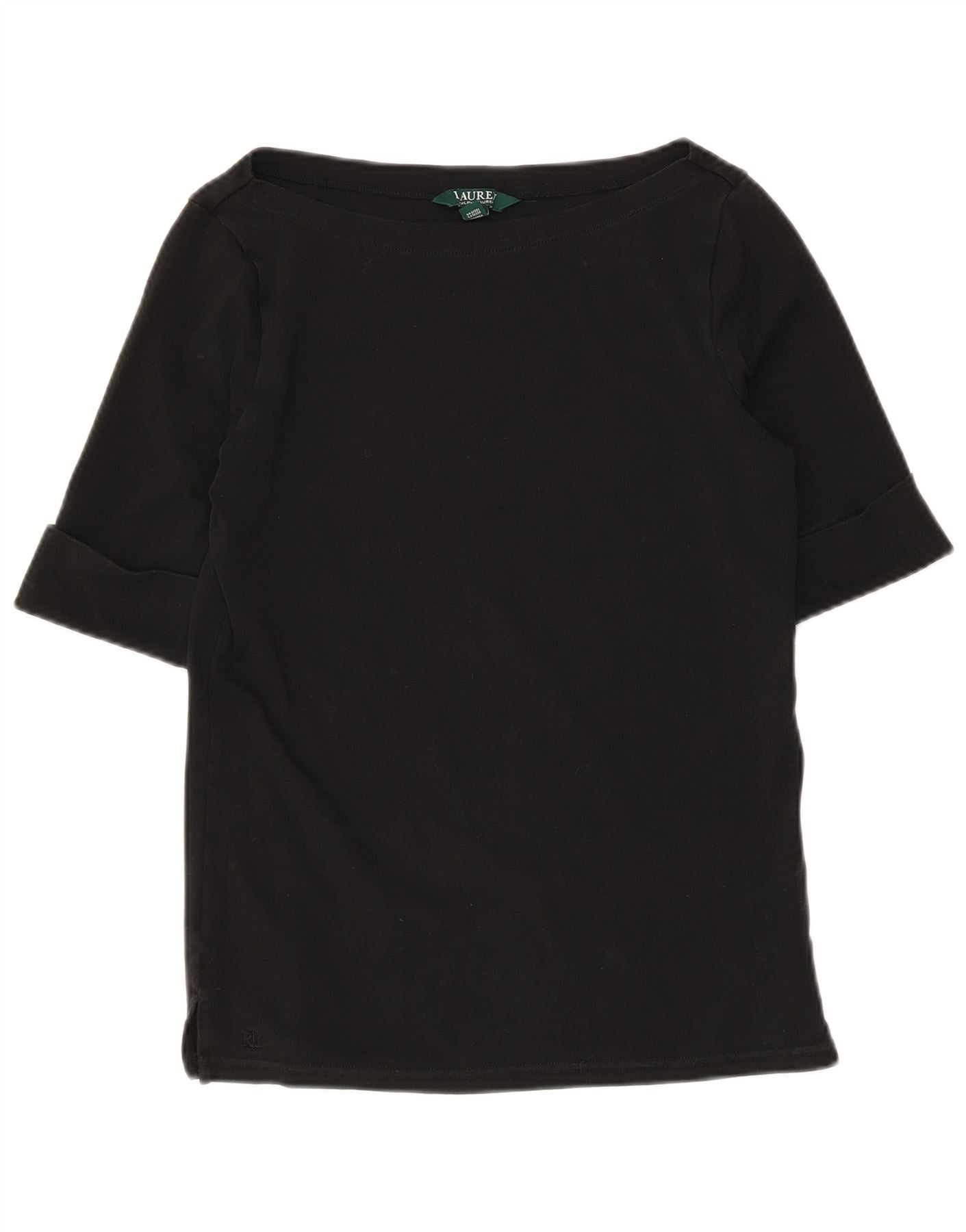 RALPH LAUREN Womens T-Shirt Top UK 12 Medium Black Cotton