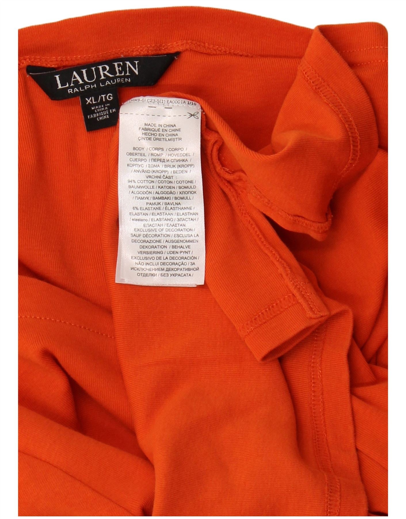 RALPH LAUREN Womens T-Shirt Top UK 18 XL Orange Cotton