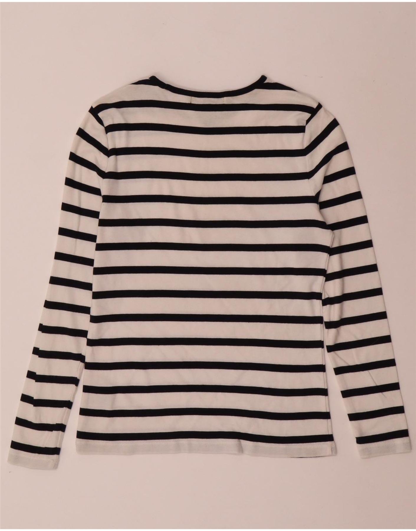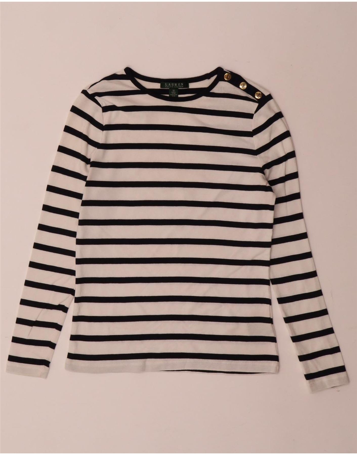 RALPH LAUREN Womens Top Long Sleeve UK 12 Medium White Striped Cotton
