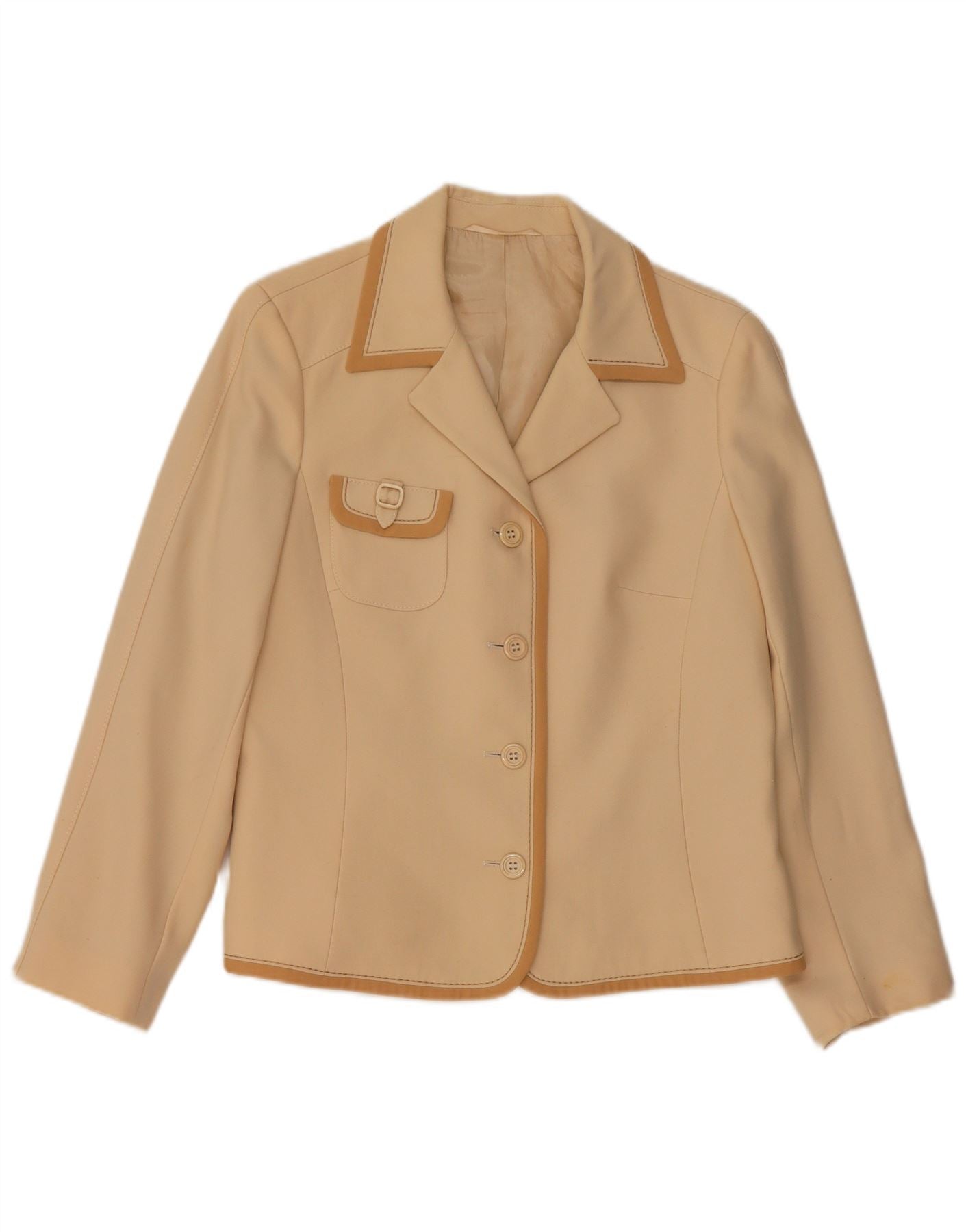 BLUMARINE Womens Sleeveless Cardigan Sweater IT 46 Large Beige Wool