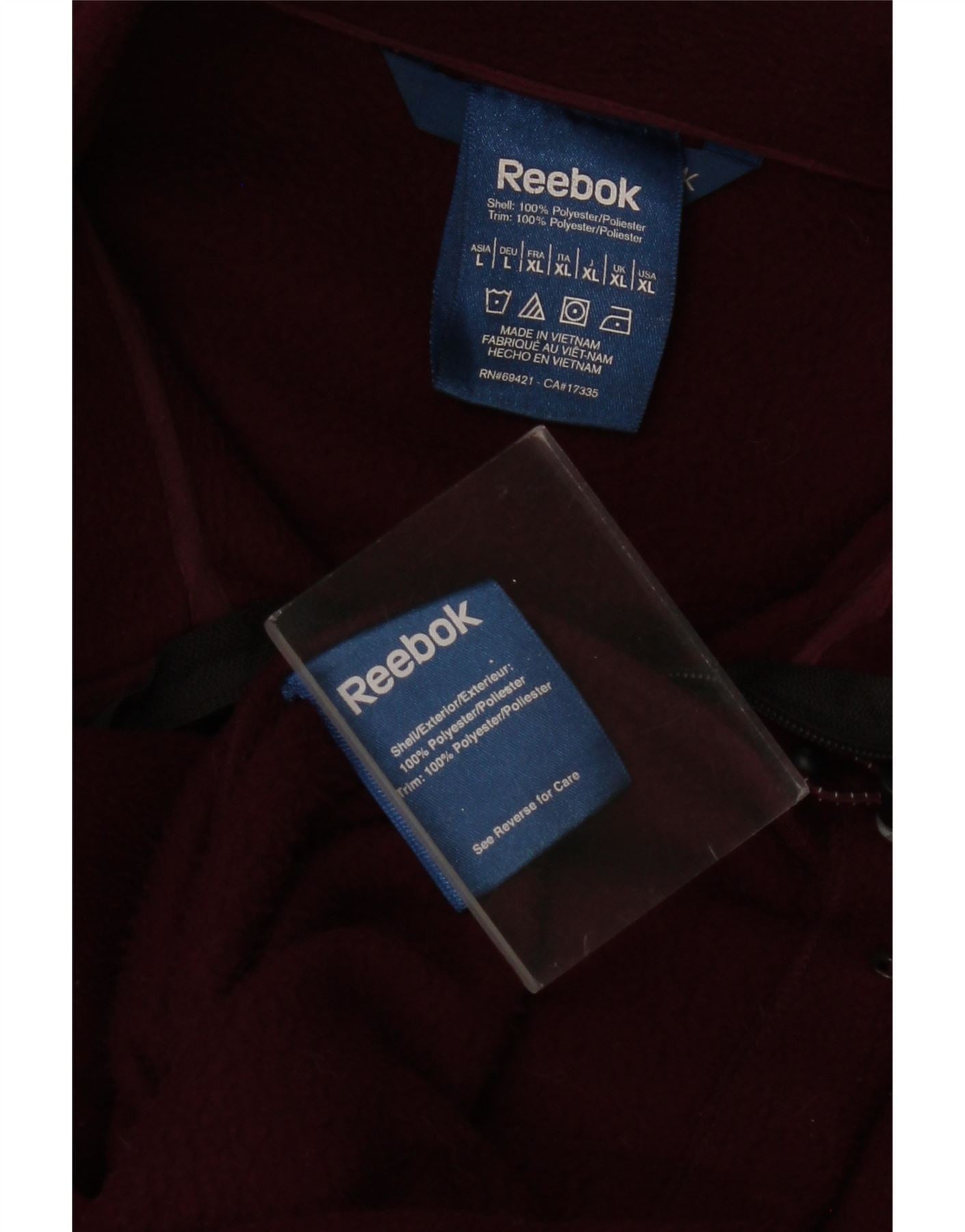 REEBOK Mens Fleece Jacket UK 42 XL Burgundy Colourblock Polyester