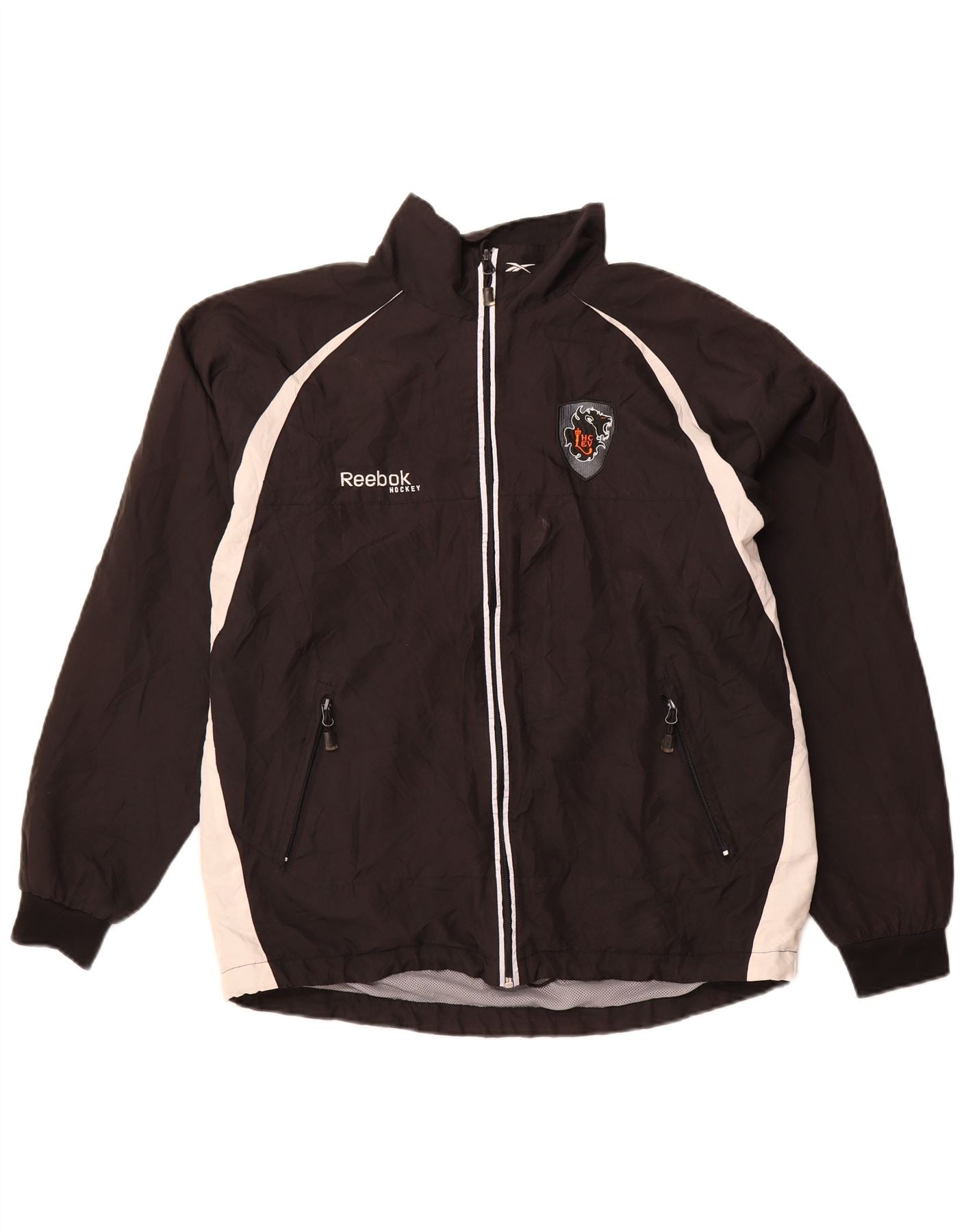 REEBOK Mens Hockey Tracksuit Top Jacket Large Black Colourblock Polyester