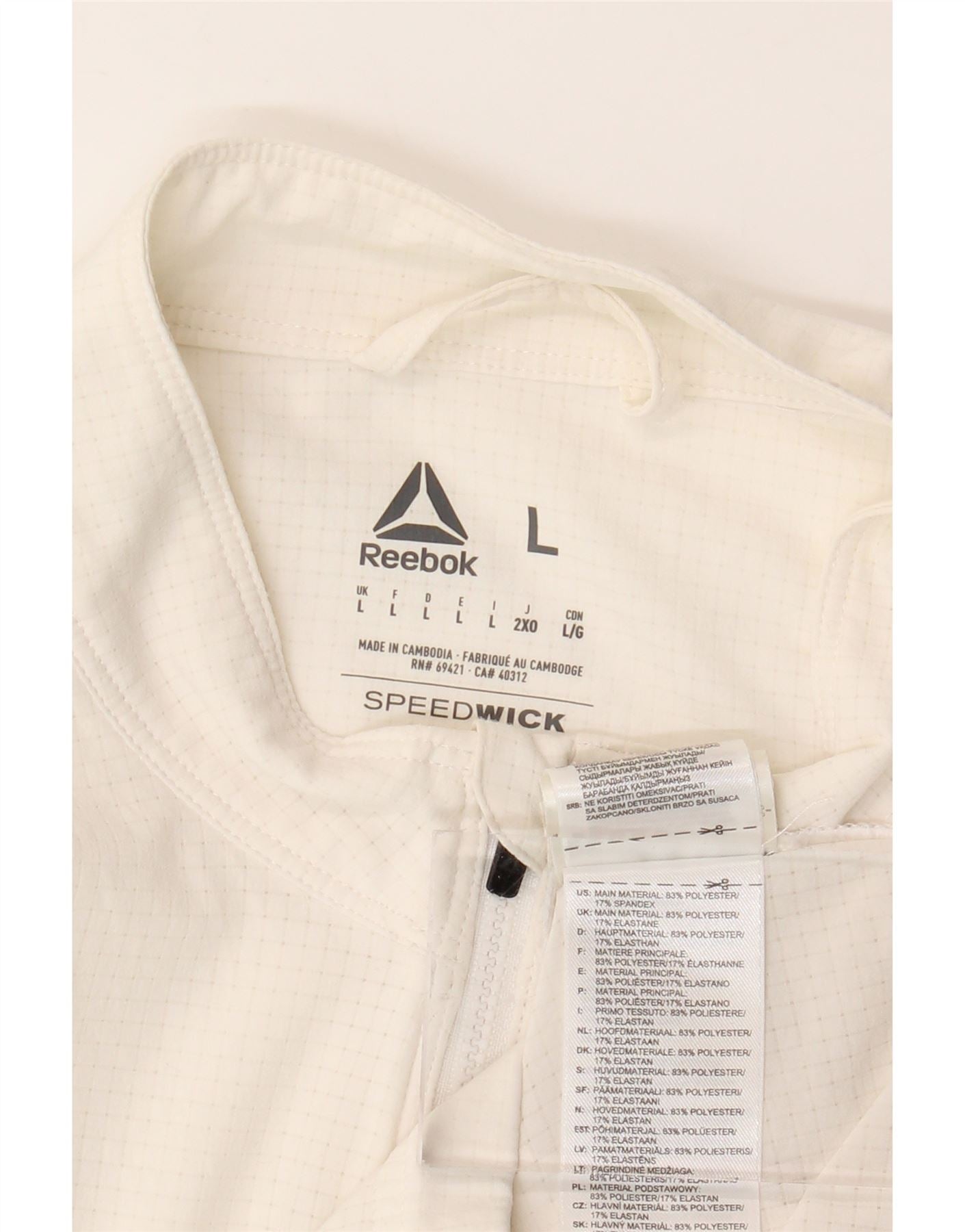 REEBOK Mens Tracksuit Top Jacket Large White Check Polyester