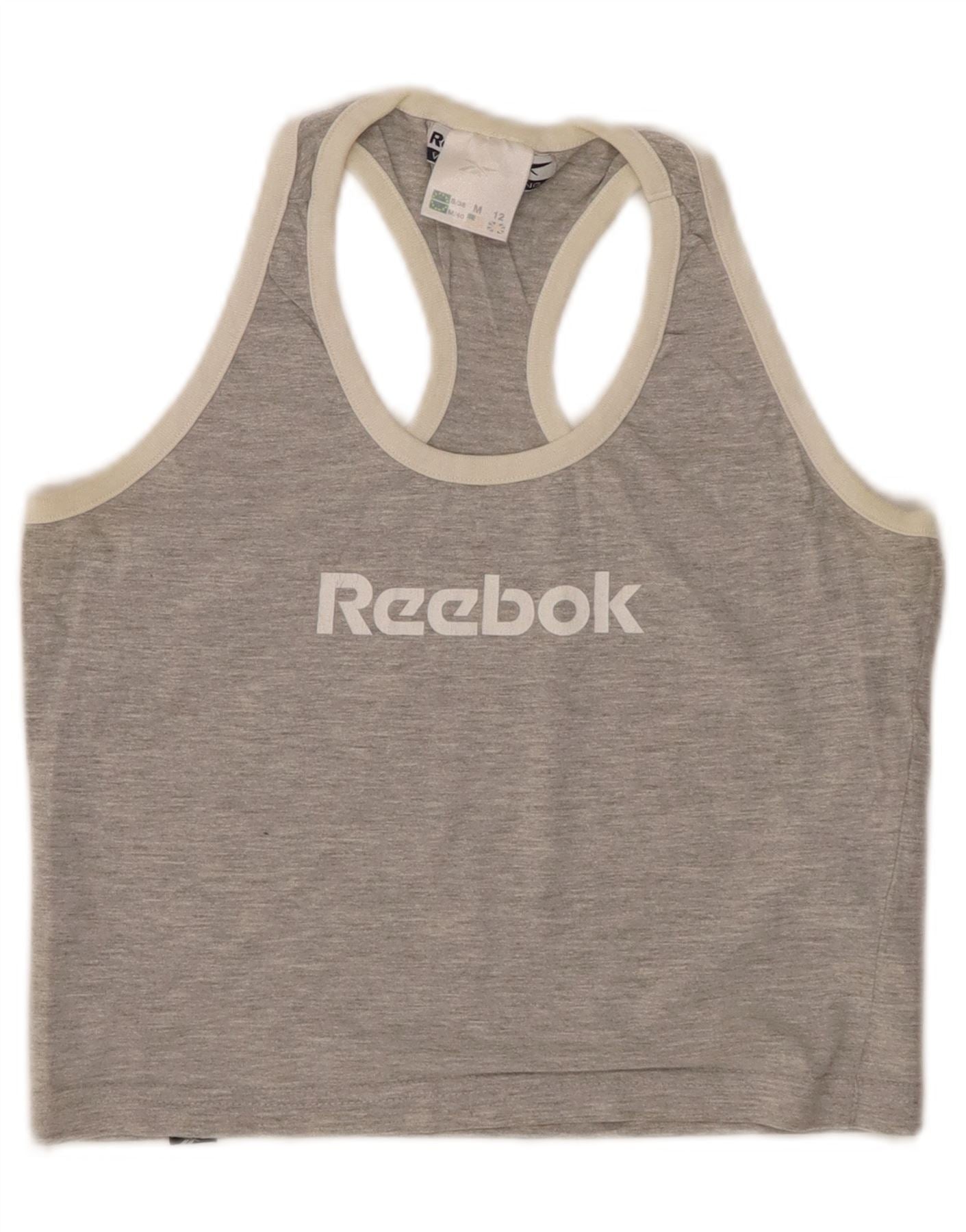 REEBOK Womens Crop Graphic Vest Top UK 12 Medium Grey Flecked Cotton