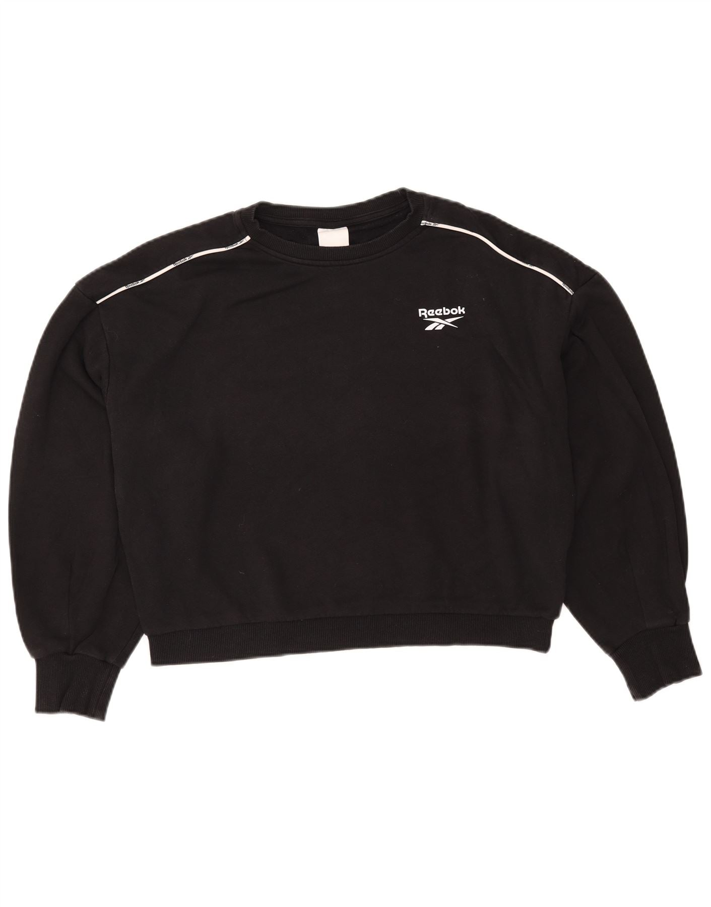 REEBOK Womens Crop Oversized Sweatshirt Jumper UK 12/14 Medium Black