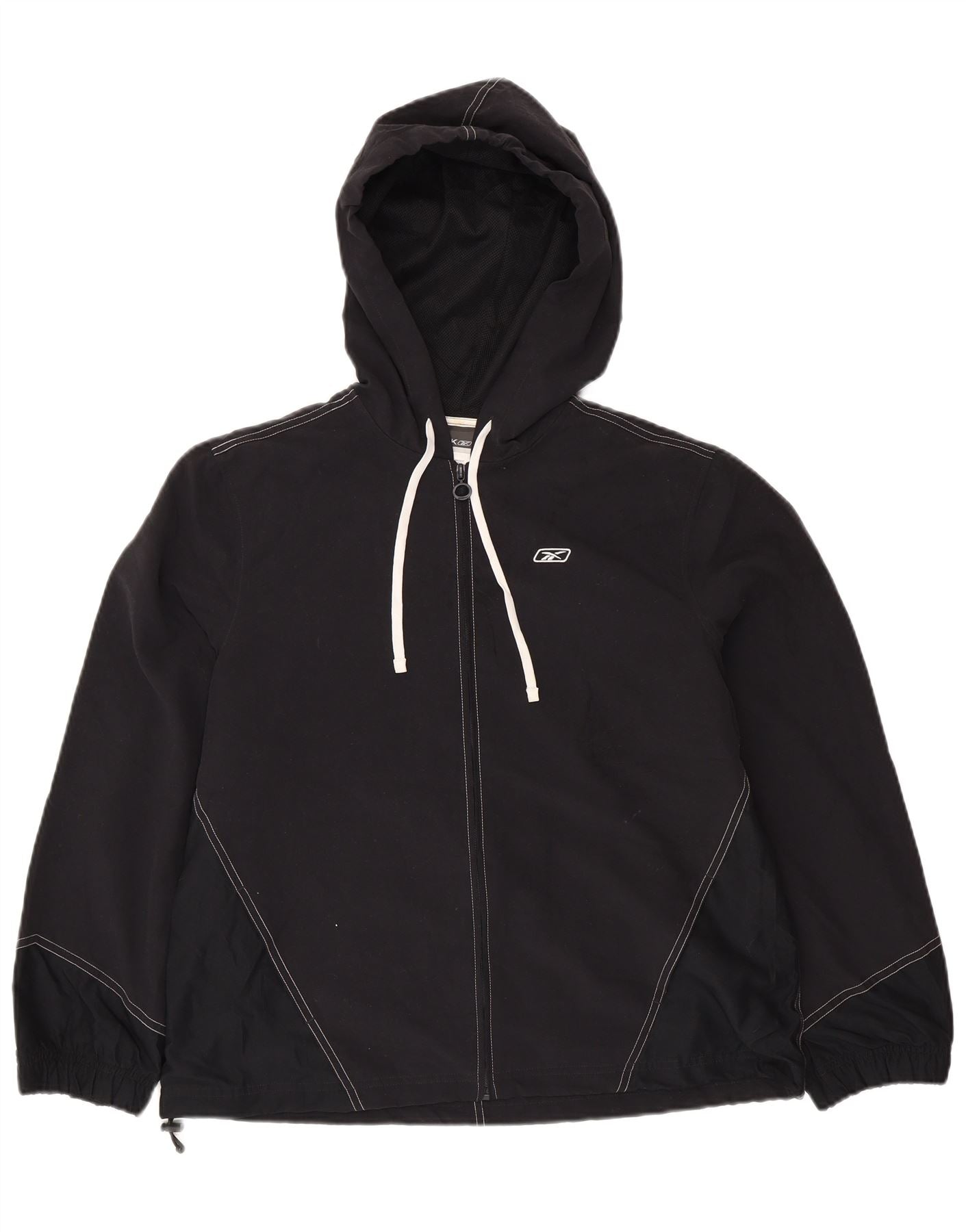 REEBOK Womens Hooded Rain Jacket UK 14 Large Black Polyester