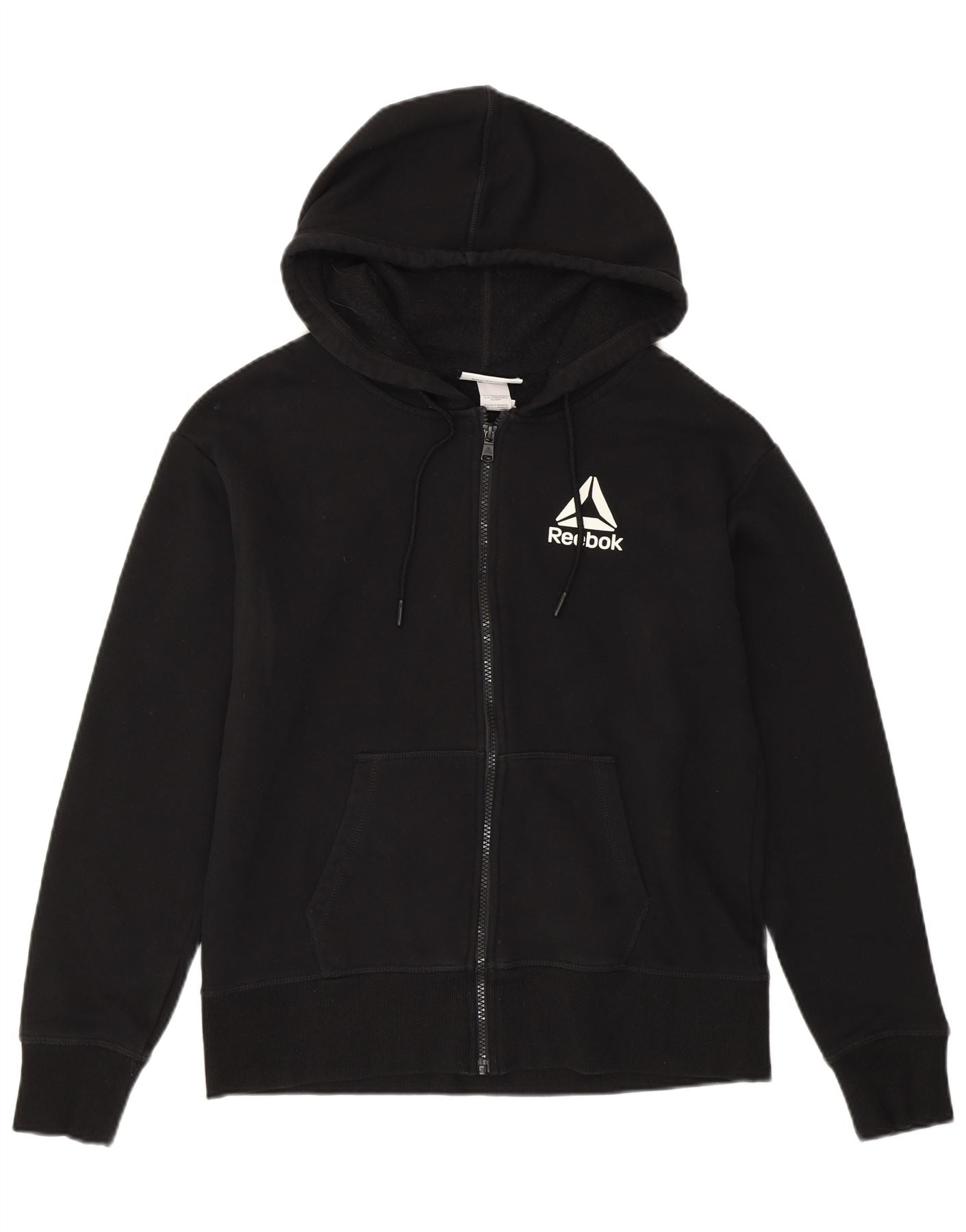 REEBOK Womens Zip Hoodie Sweater UK 14 Medium Black Cotton