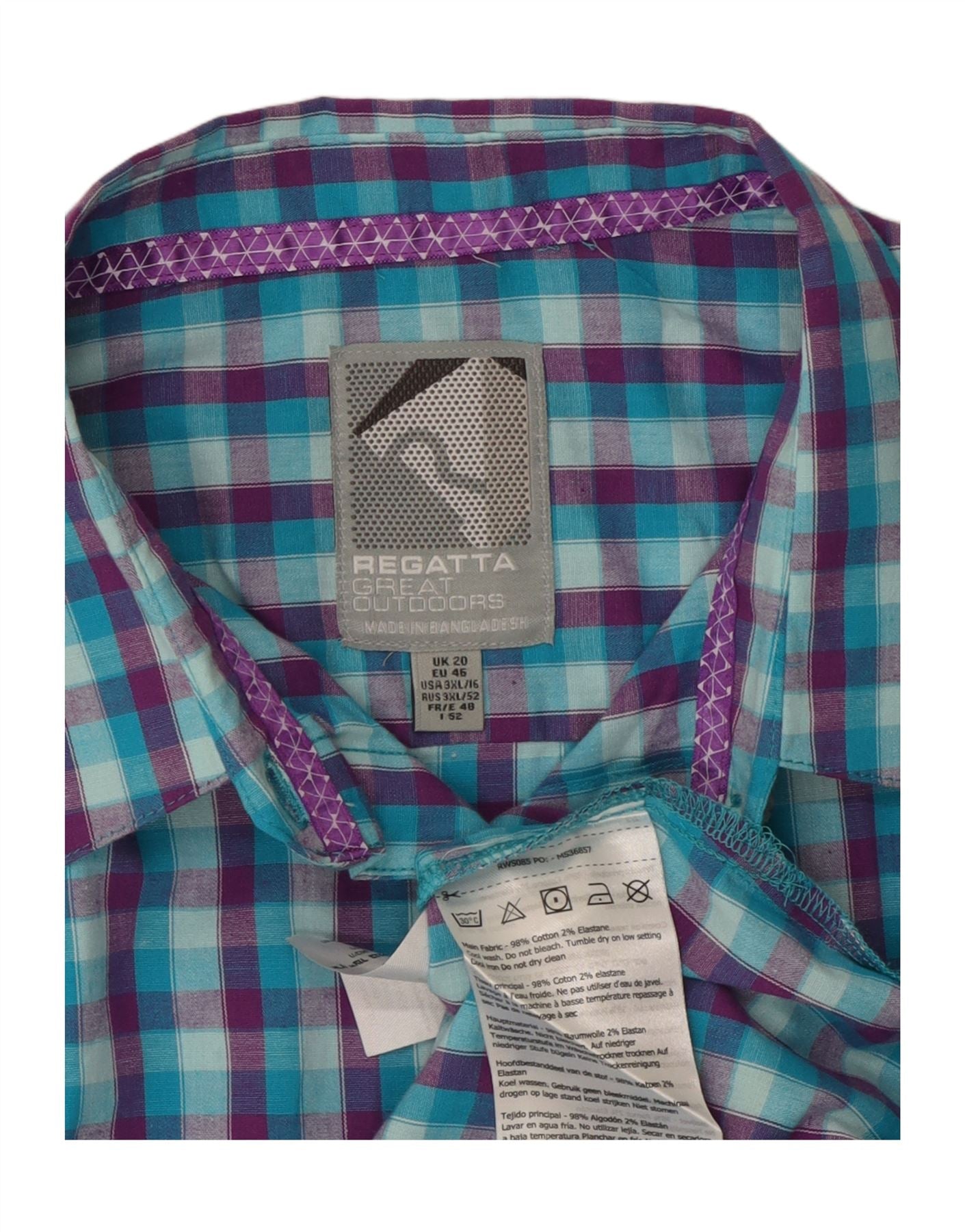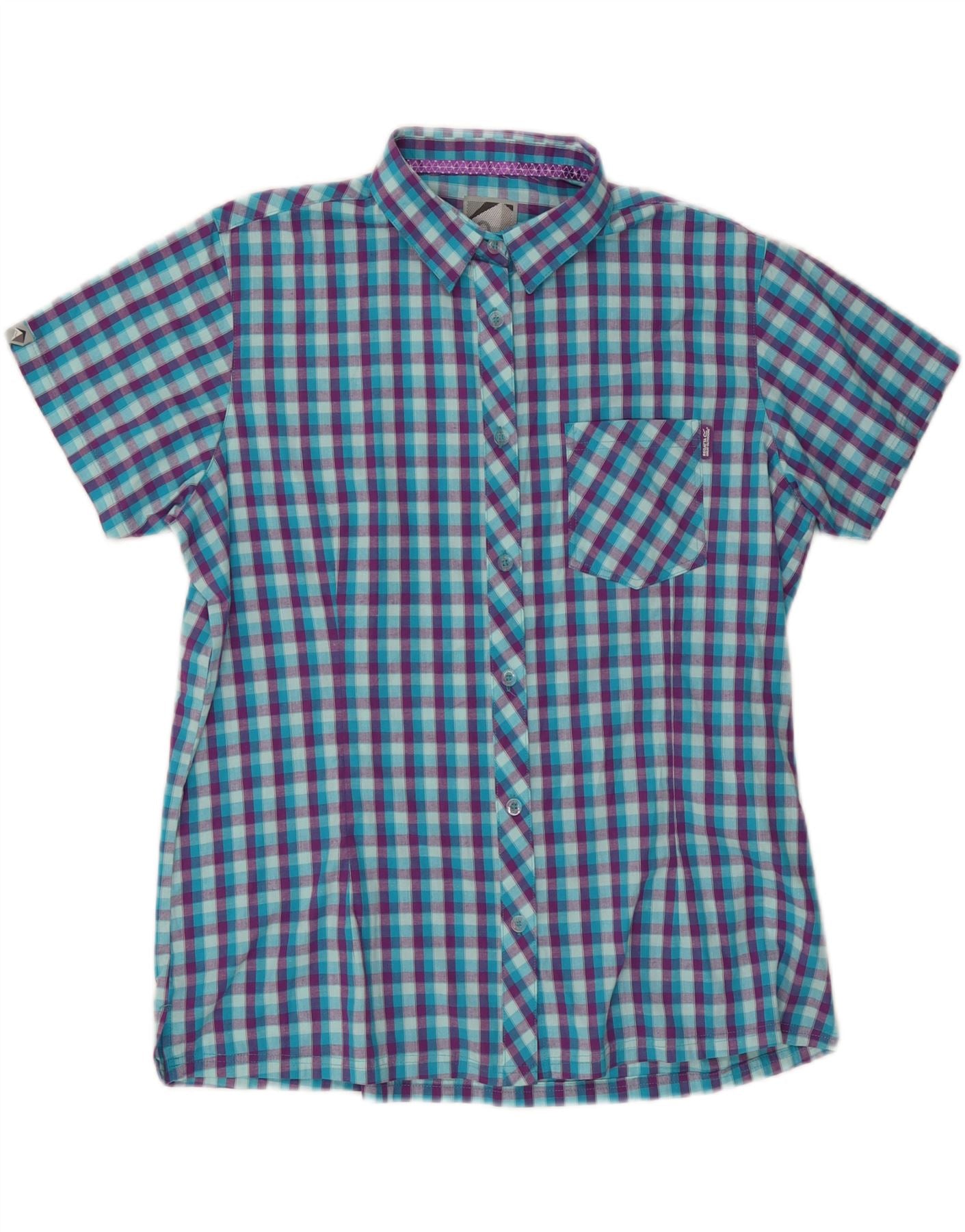 REGATTA Womens Short Sleeve Shirt UK 20 2XL Blue Check Cotton
