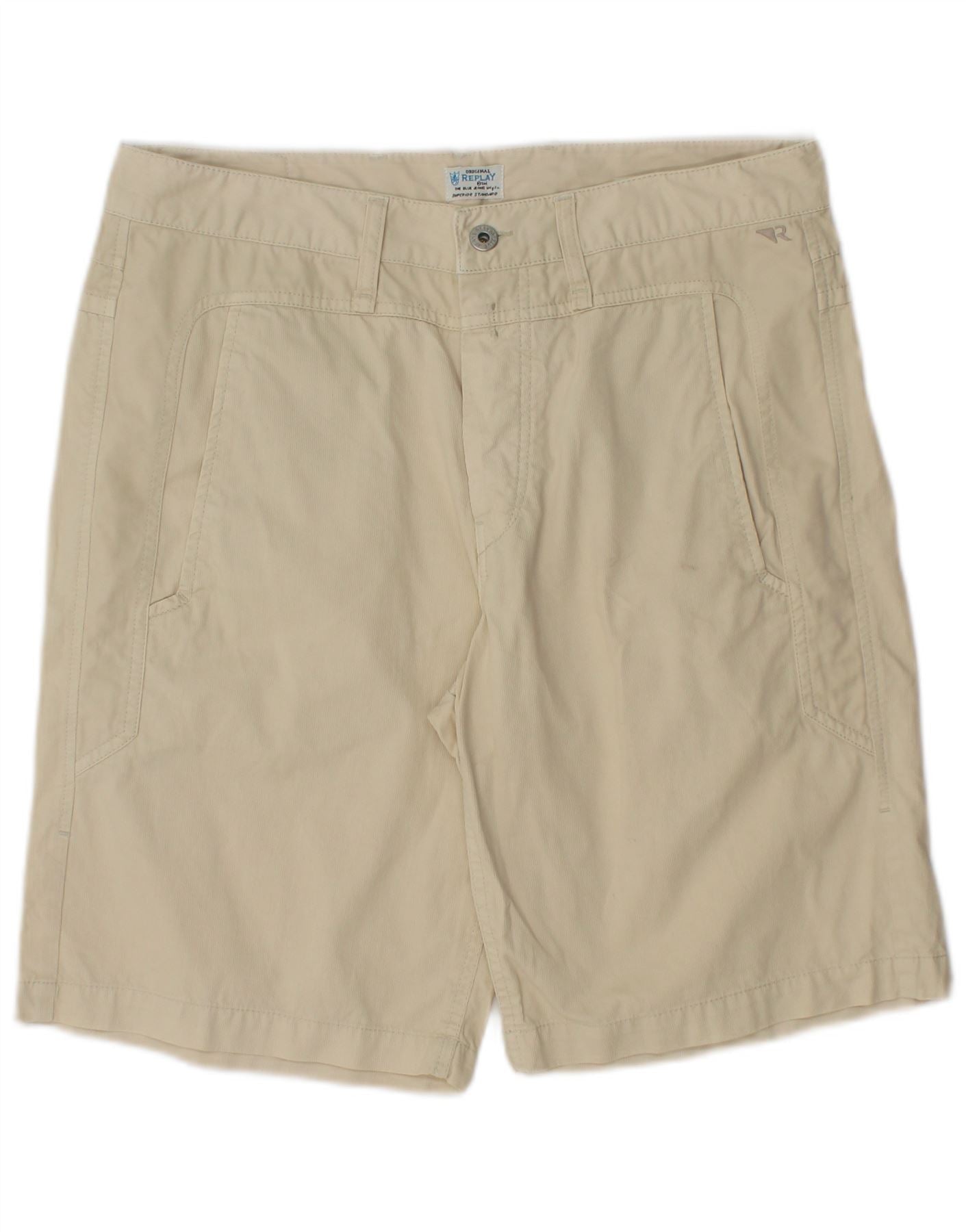 REPLAY Mens Casual Shorts W31 Medium Off White Cotton