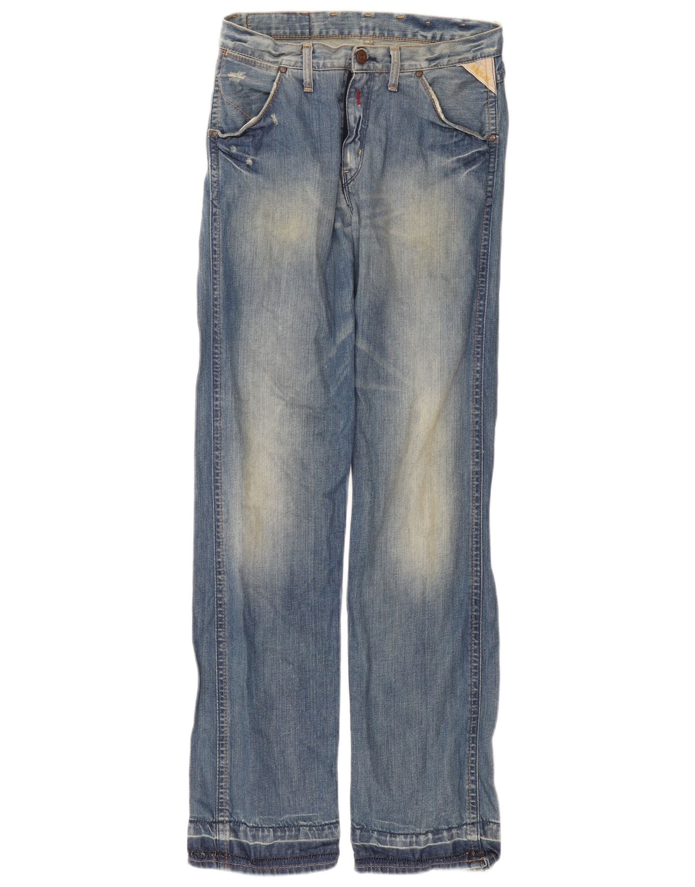 Replay Mens Distressed Straight Jeans W30 L34 Blue Cotton