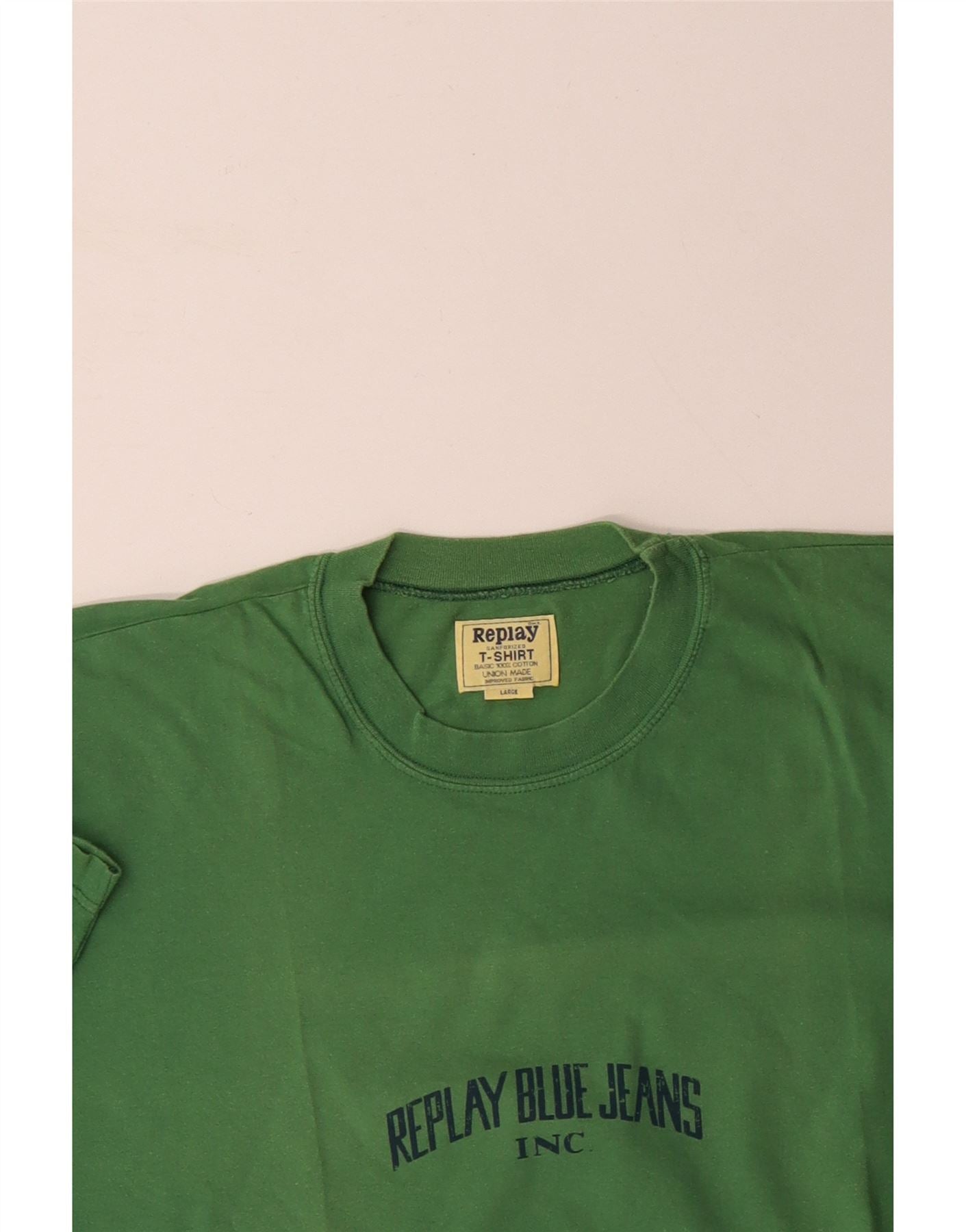 REPLAY Mens Graphic T-Shirt Top Large Green Cotton