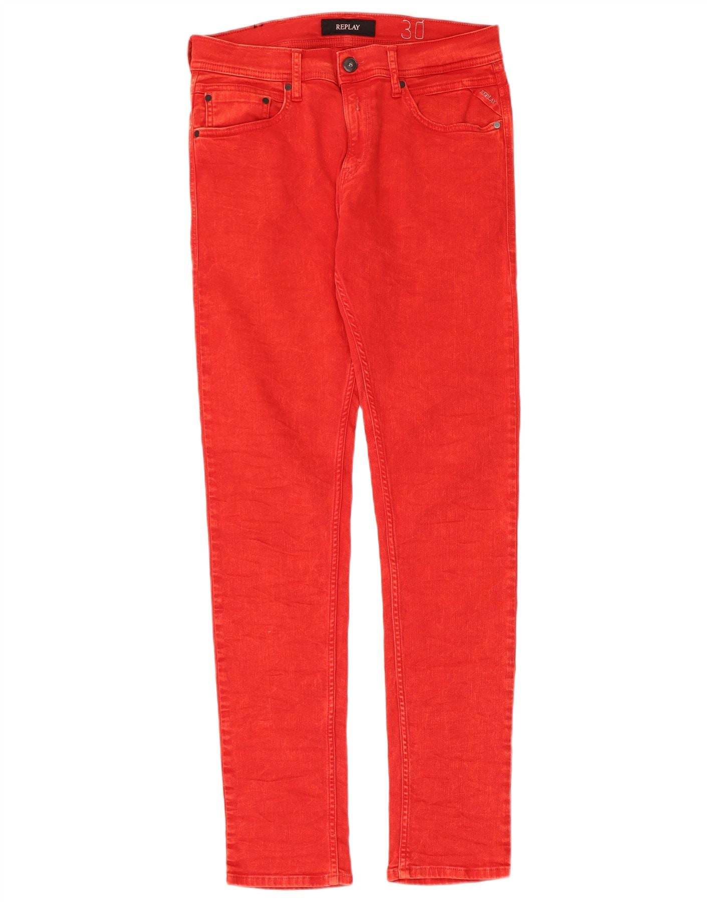 REPLAY Mens Skinny Jeans W30 L32 Red Cotton