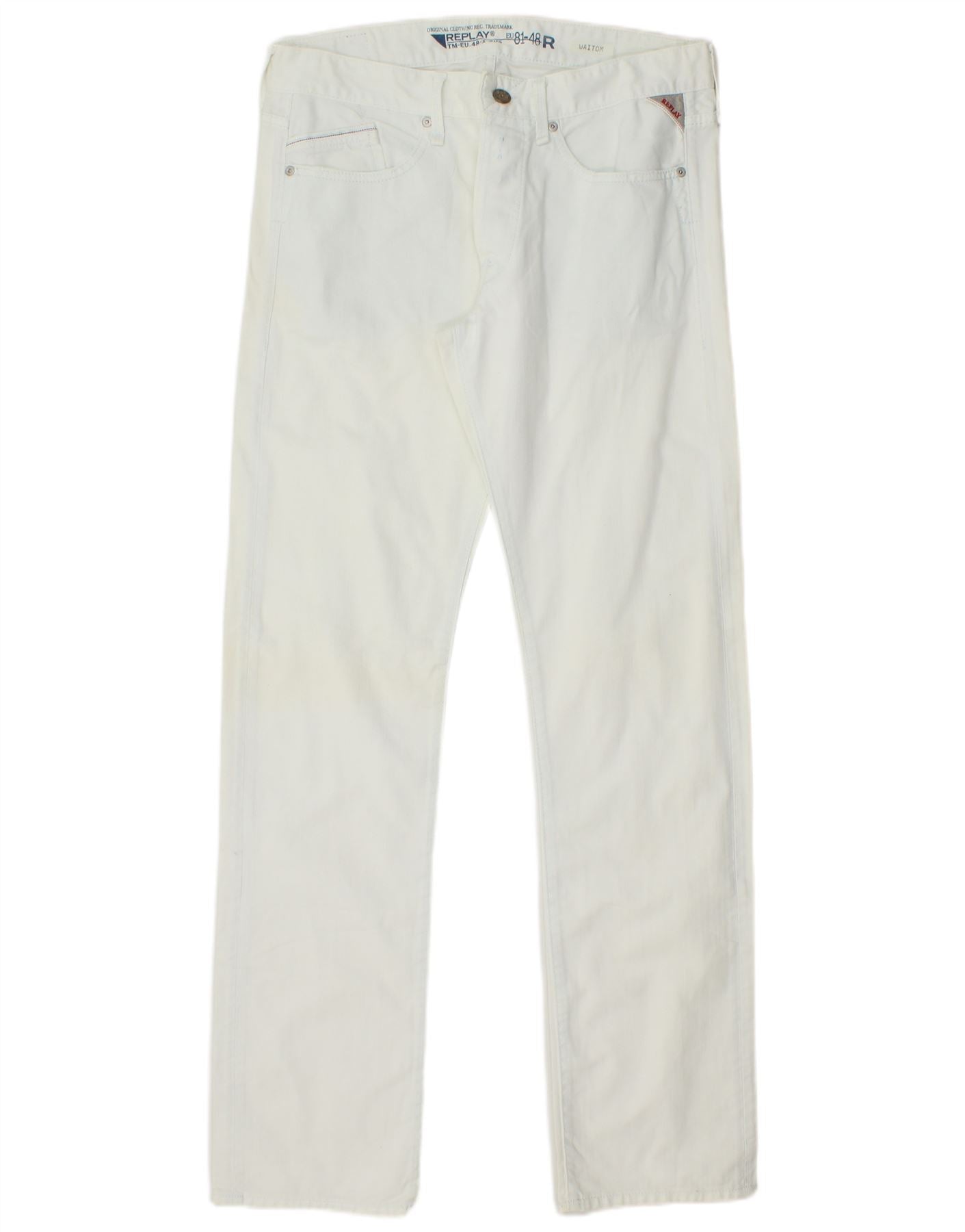 REPLAY Mens Waitom Straight Jeans W32 L34 White Cotton