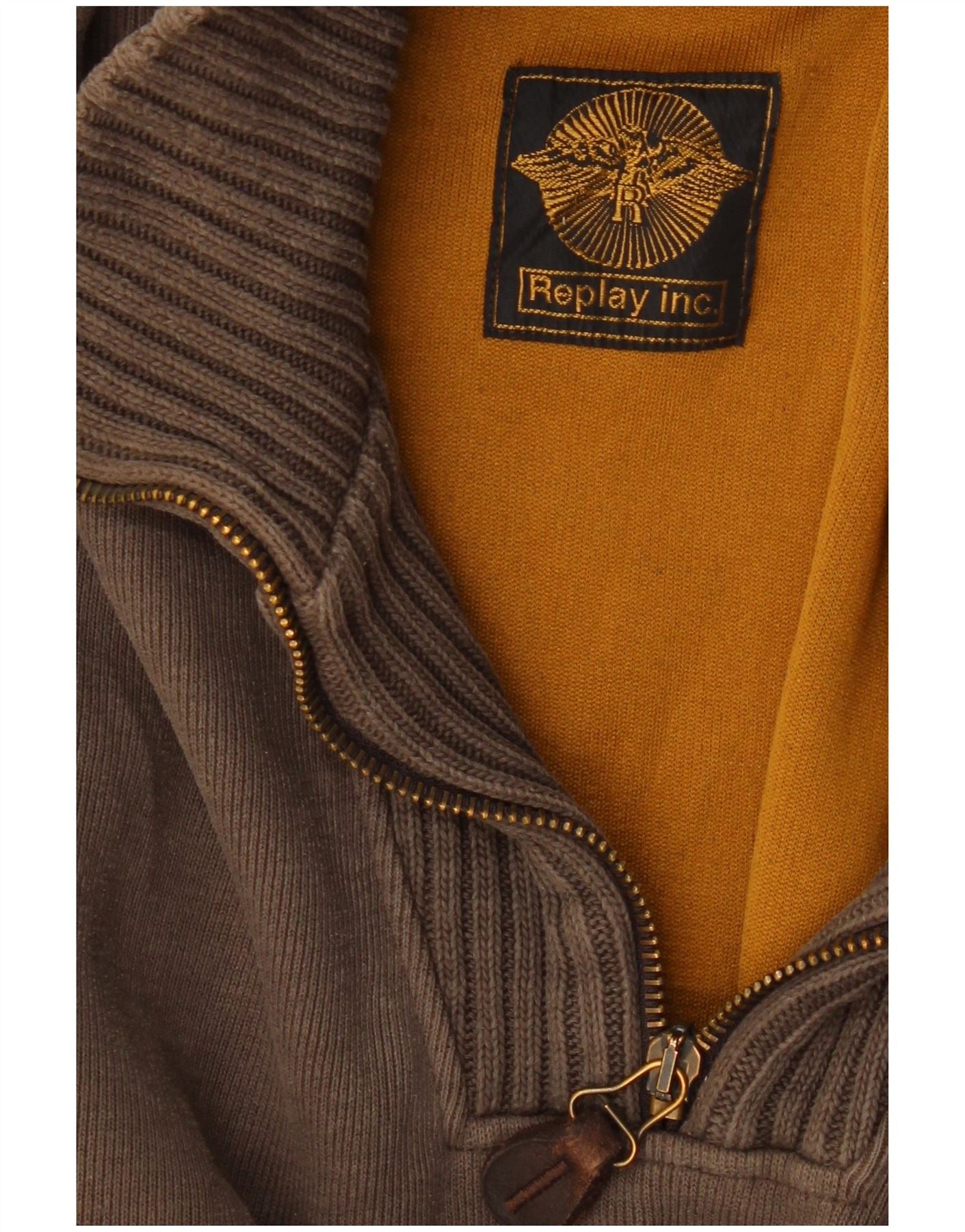 REPLAY Mens Zip Neck Jumper Sweater Medium Grey