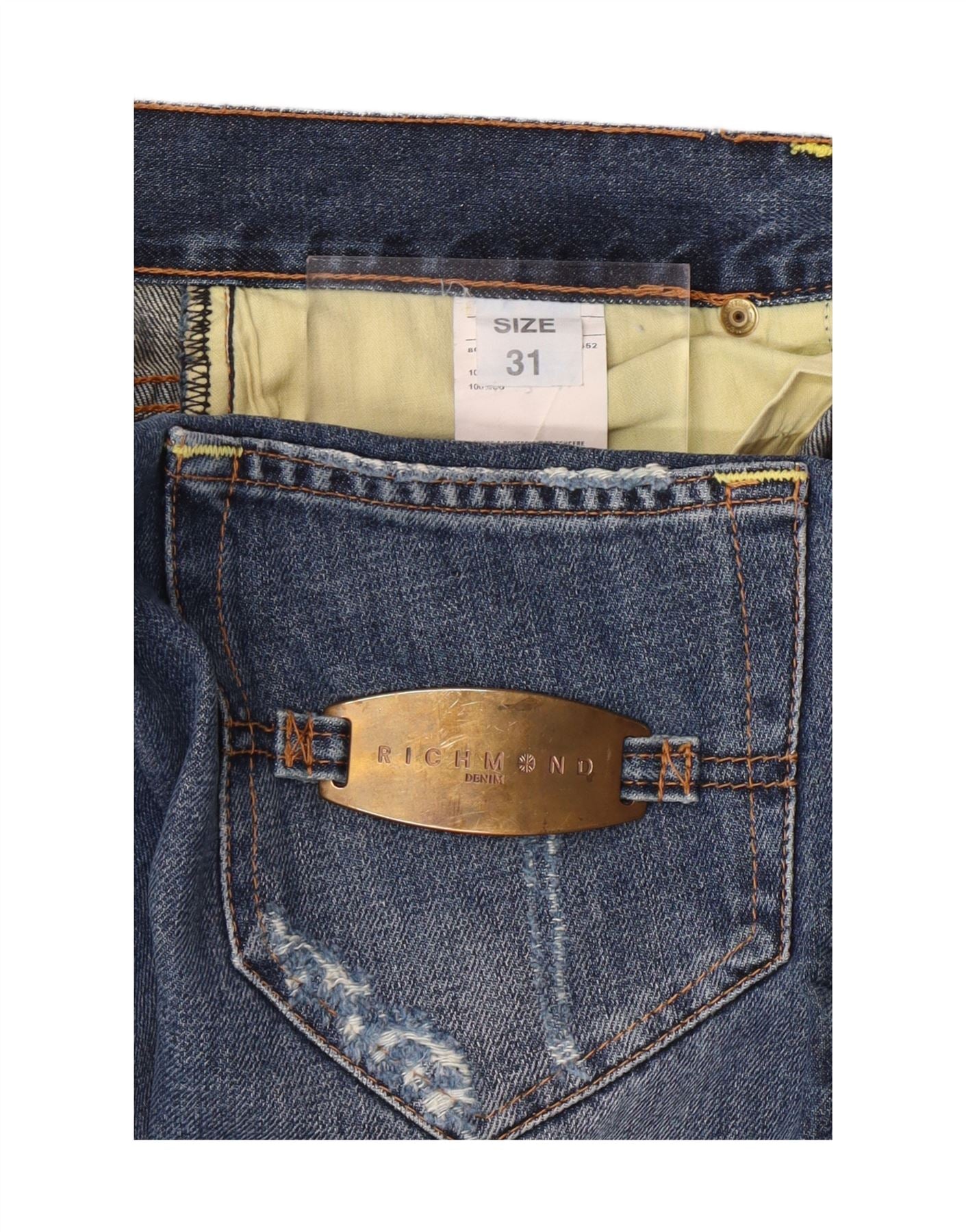 RICHMOND Mens Distressed Straight Jeans W31 L34 Blue Cotton