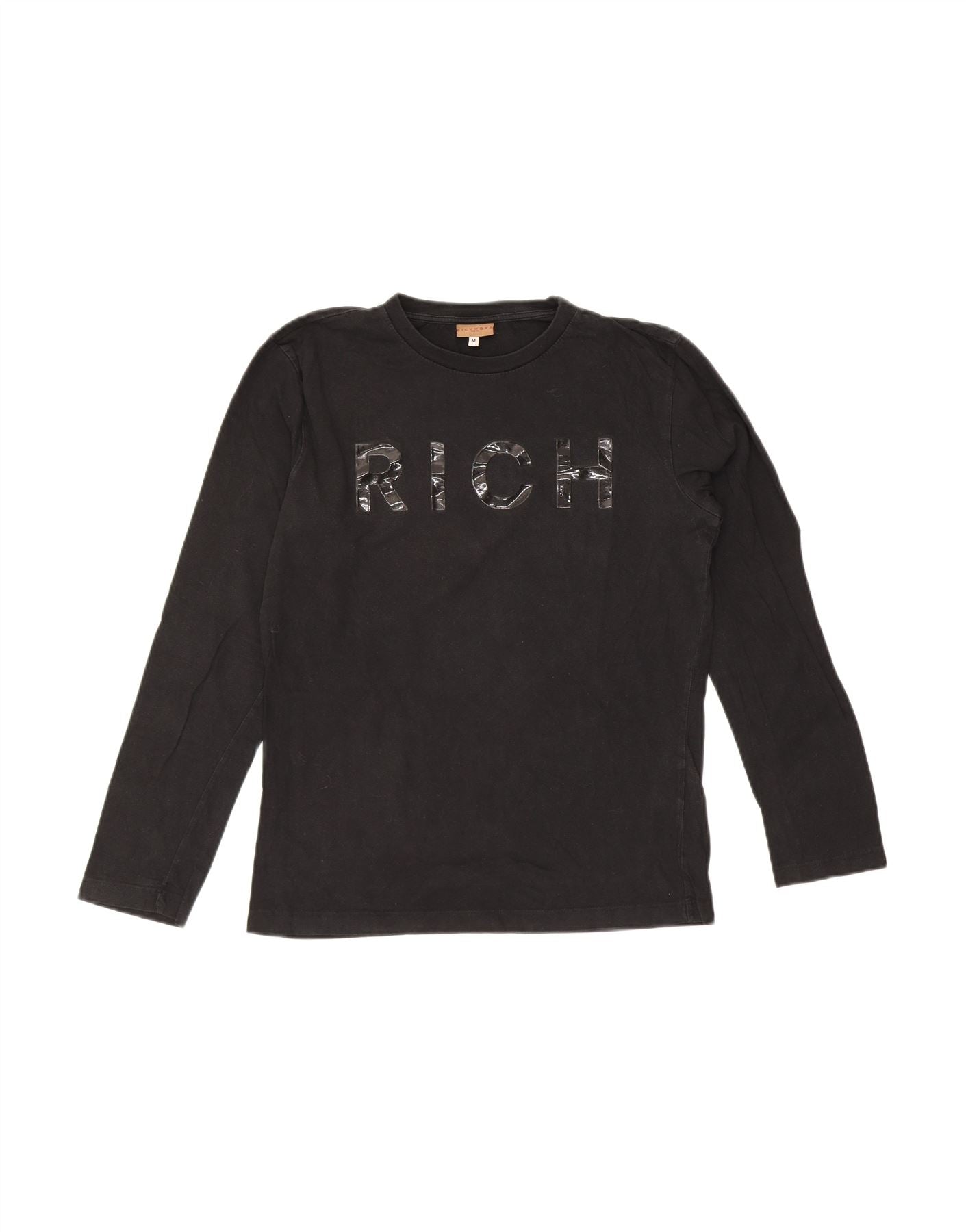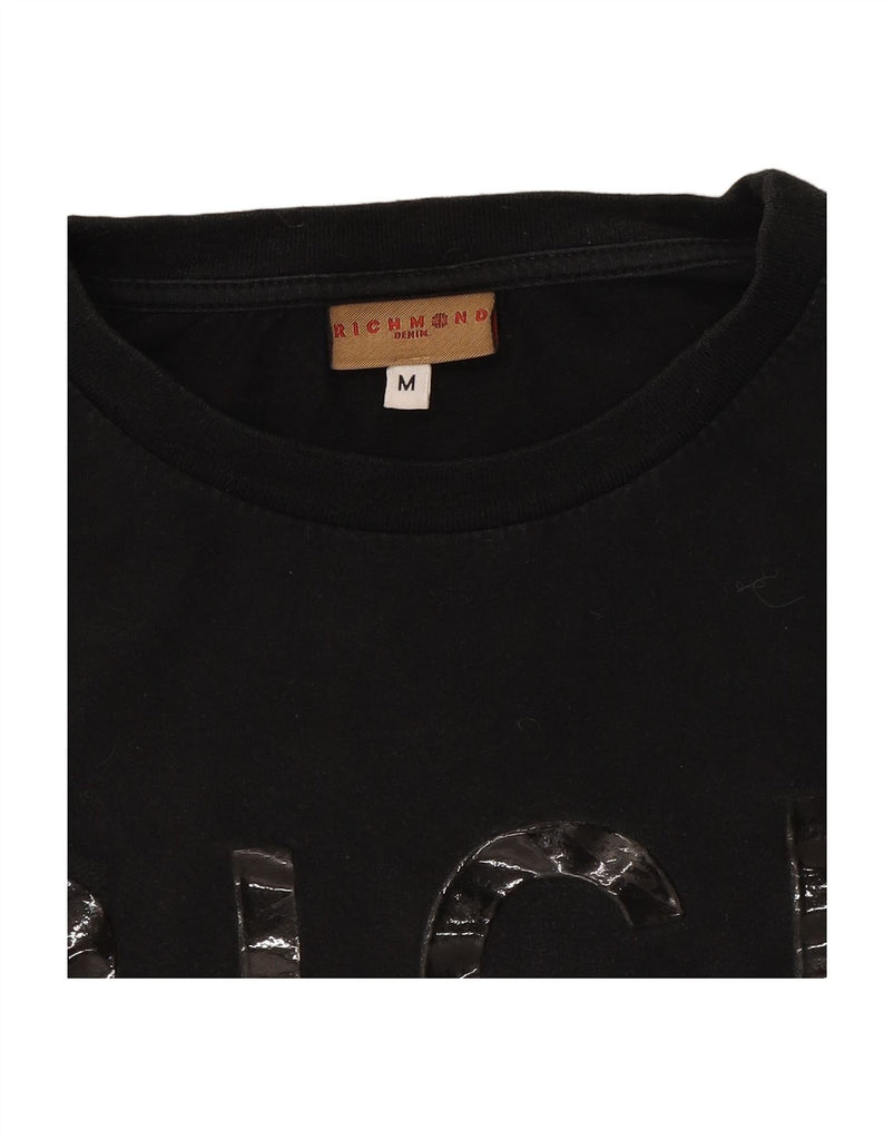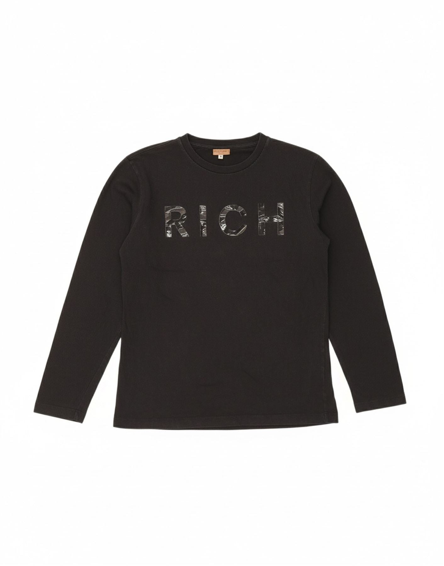 RICHMOND Mens Graphic Top Long Sleeve Medium Black Cotton