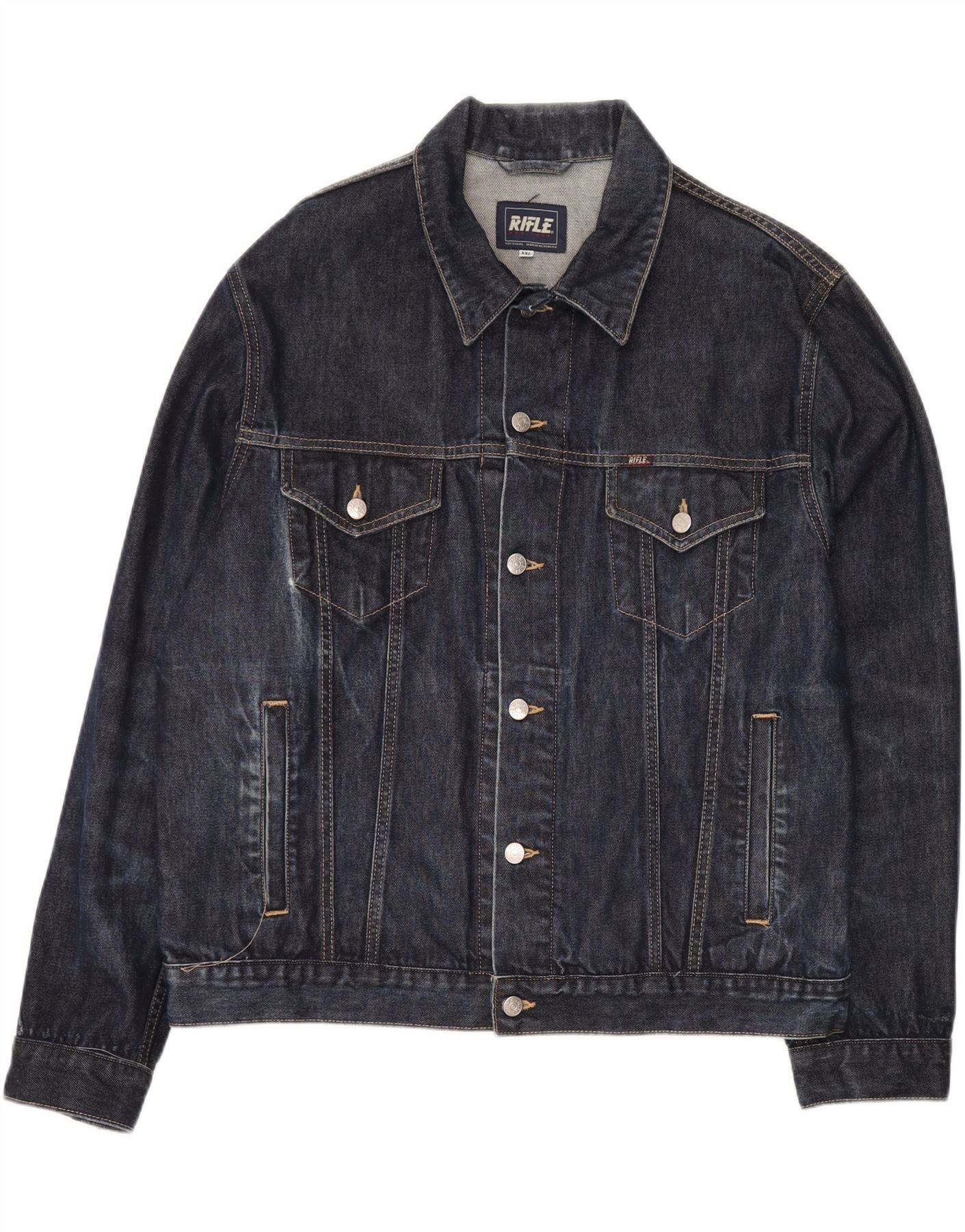RIFLE Mens Denim Jacket UK 44 2XL Blue Cotton