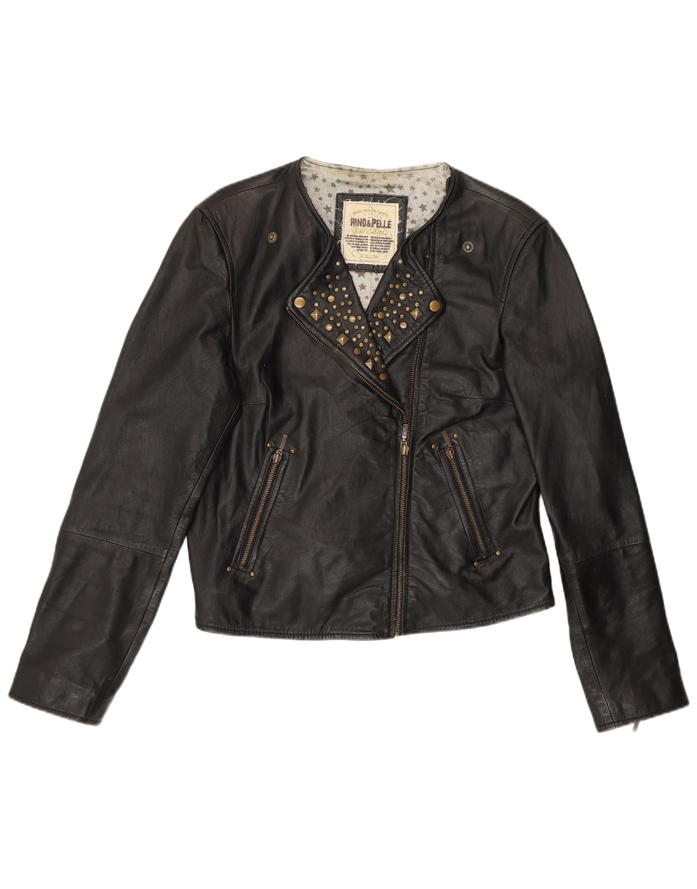RINO & PELLE Womens Crop Biker Leather Jacket UK 12 Medium Black Leather