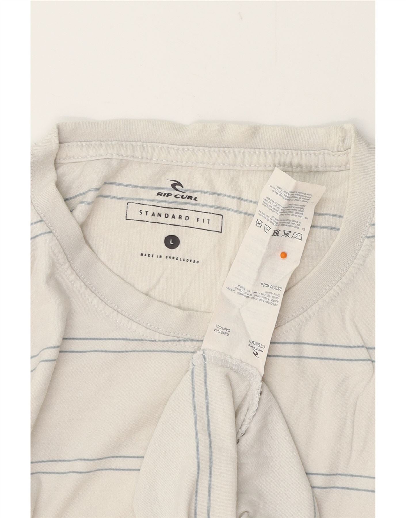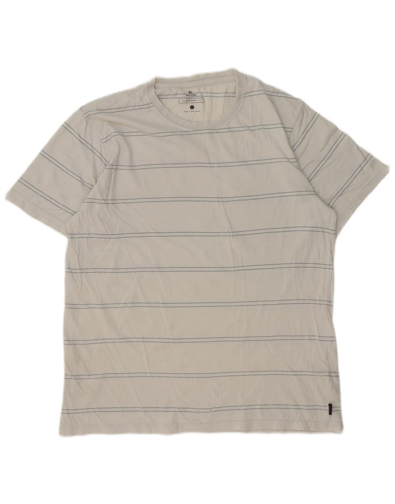 RIP CURL Mens Standard Fit T-Shirt Top Large White Striped Cotton