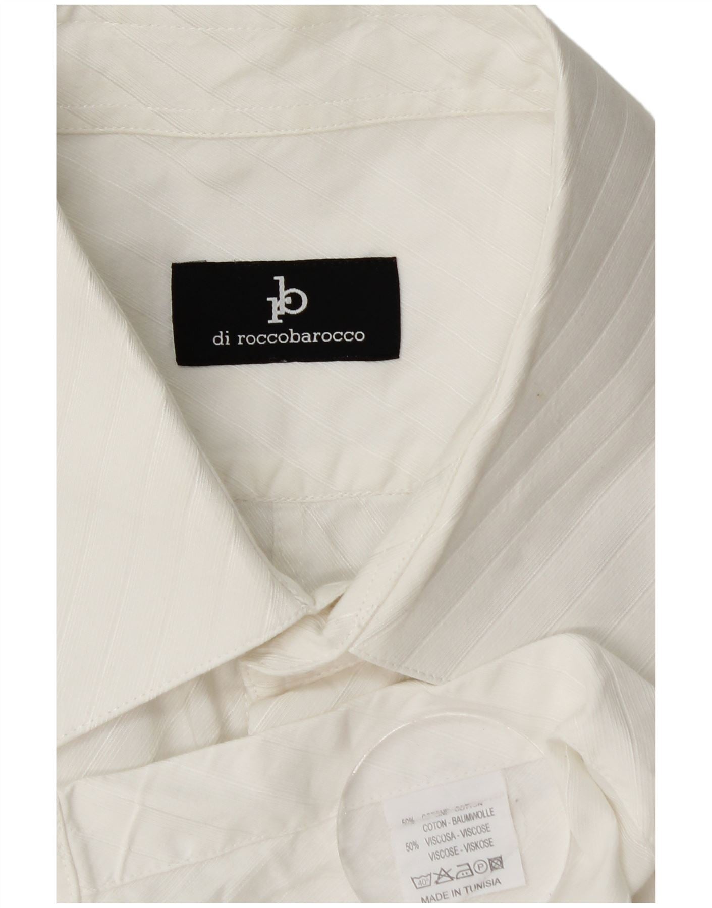 ROCCOBAROCCO Mens Formal Shirt Medium White Pinstripe Cotton