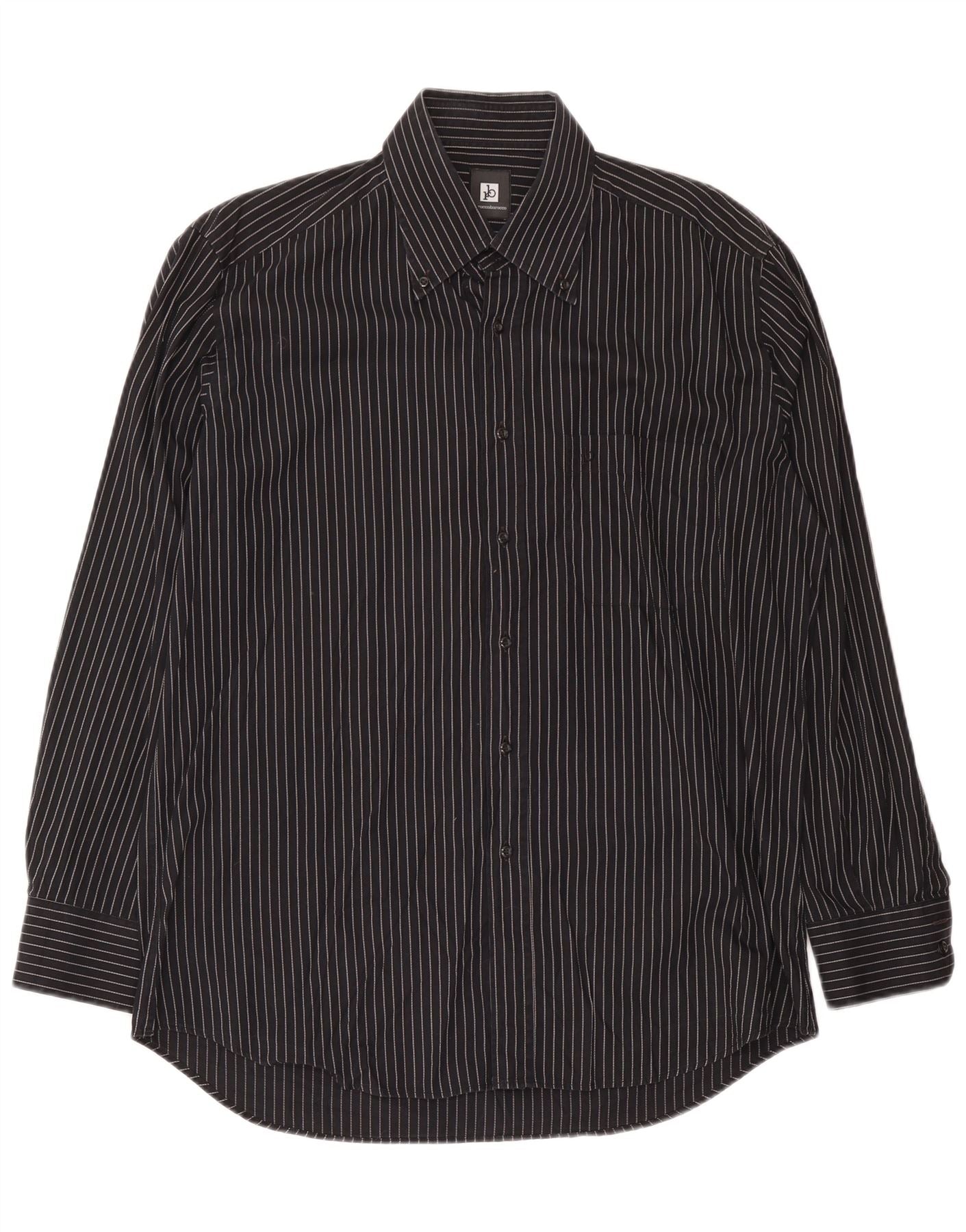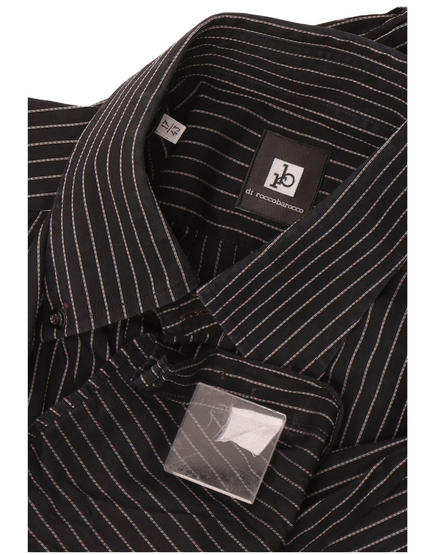 Roccobarocco Mens Shirt Size 17 43 XL Black Striped Cotton