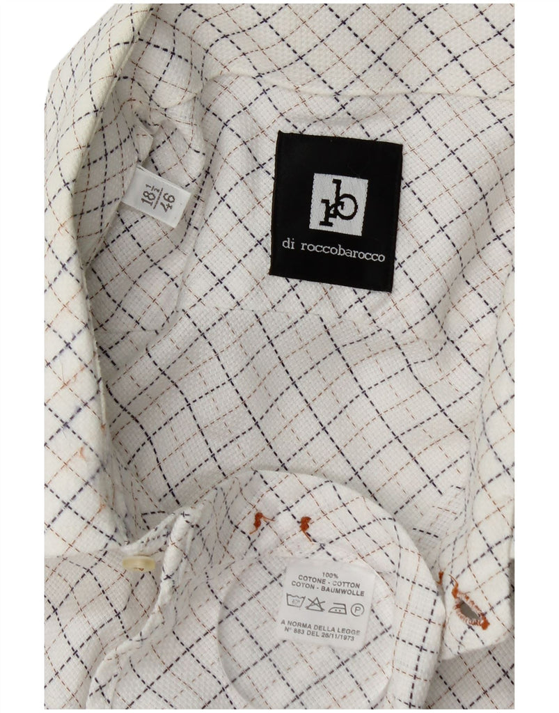 ROCCOBAROCCO Mens Shirt Size 46 18 1/2 2XL White Check Cotton
