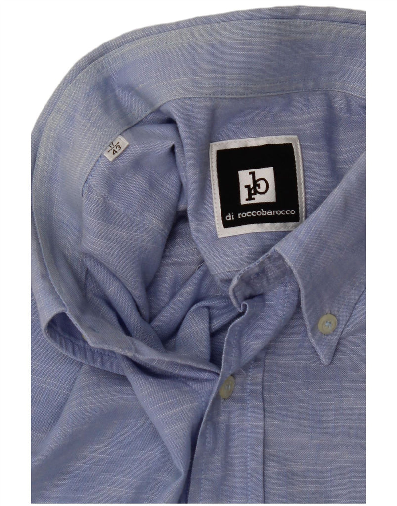 ROCCOBAROCCO Mens Short Sleeve Shirt Size 17 43 XL Blue Flecked Cotton