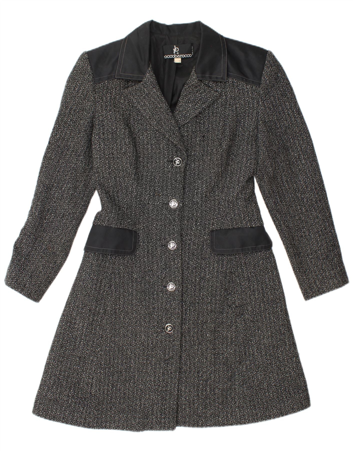 ROCCOBAROCCO Womens Overcoat IT 42 Medium Black Flecked Wool