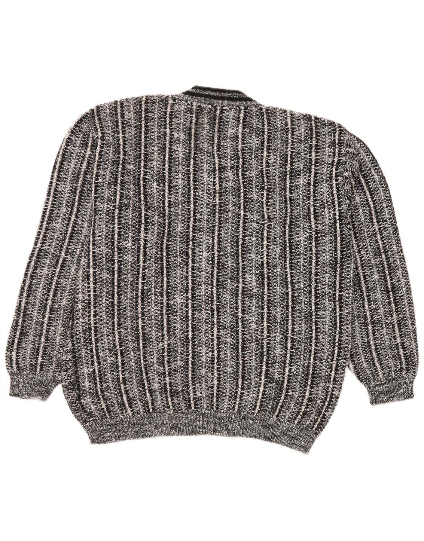 RODES Mens V-Neck Jumper Sweater Large Grey Striped Acrylic