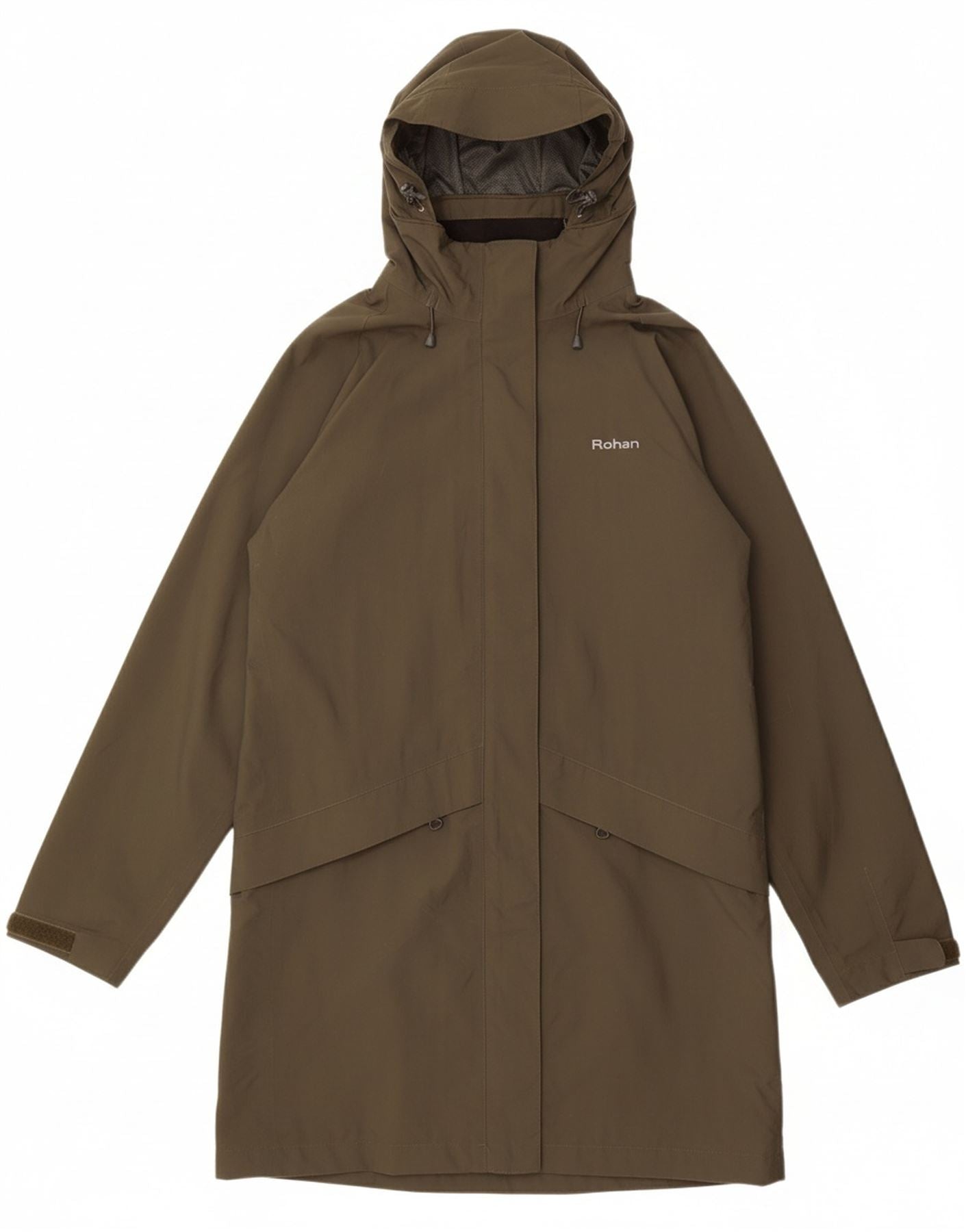 ROHAN Womens Hooded Raincoat UK 16 Large Khaki Polyamide