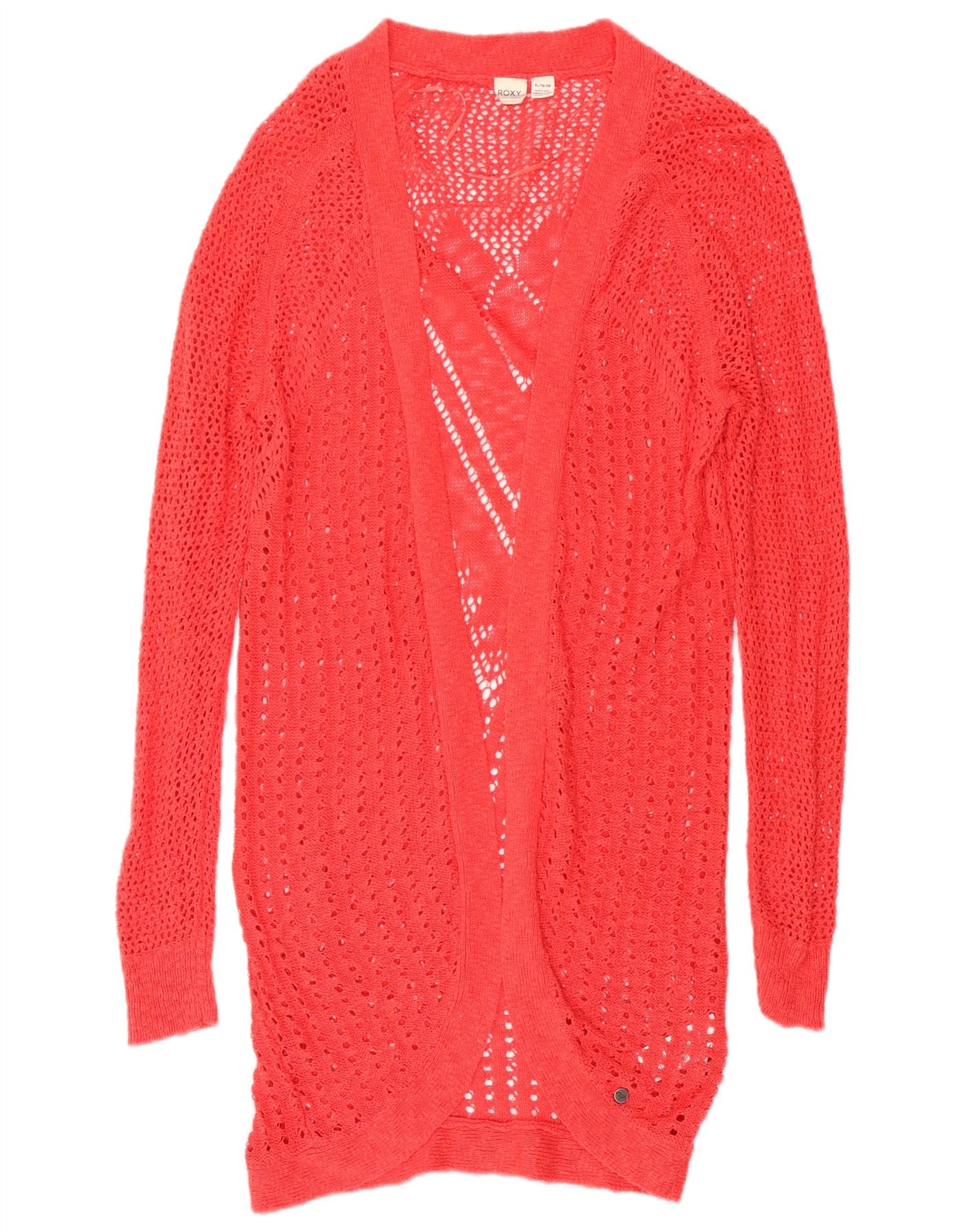 ROXY Womens Longline Crochet Cardigan Sweater UK 18 XL Red Cotton