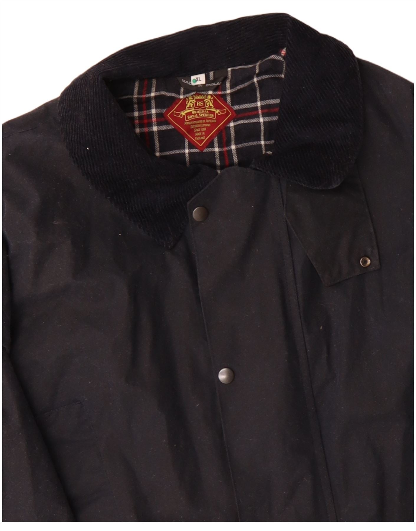 ROYAL SPENCER Mens Loose Fit Waxed Cotton Jacket UK 42 XL Navy Blue Cotton