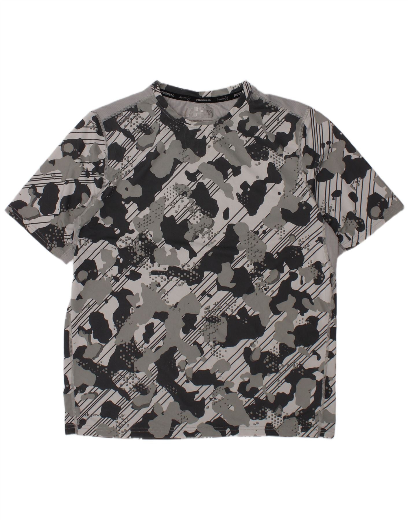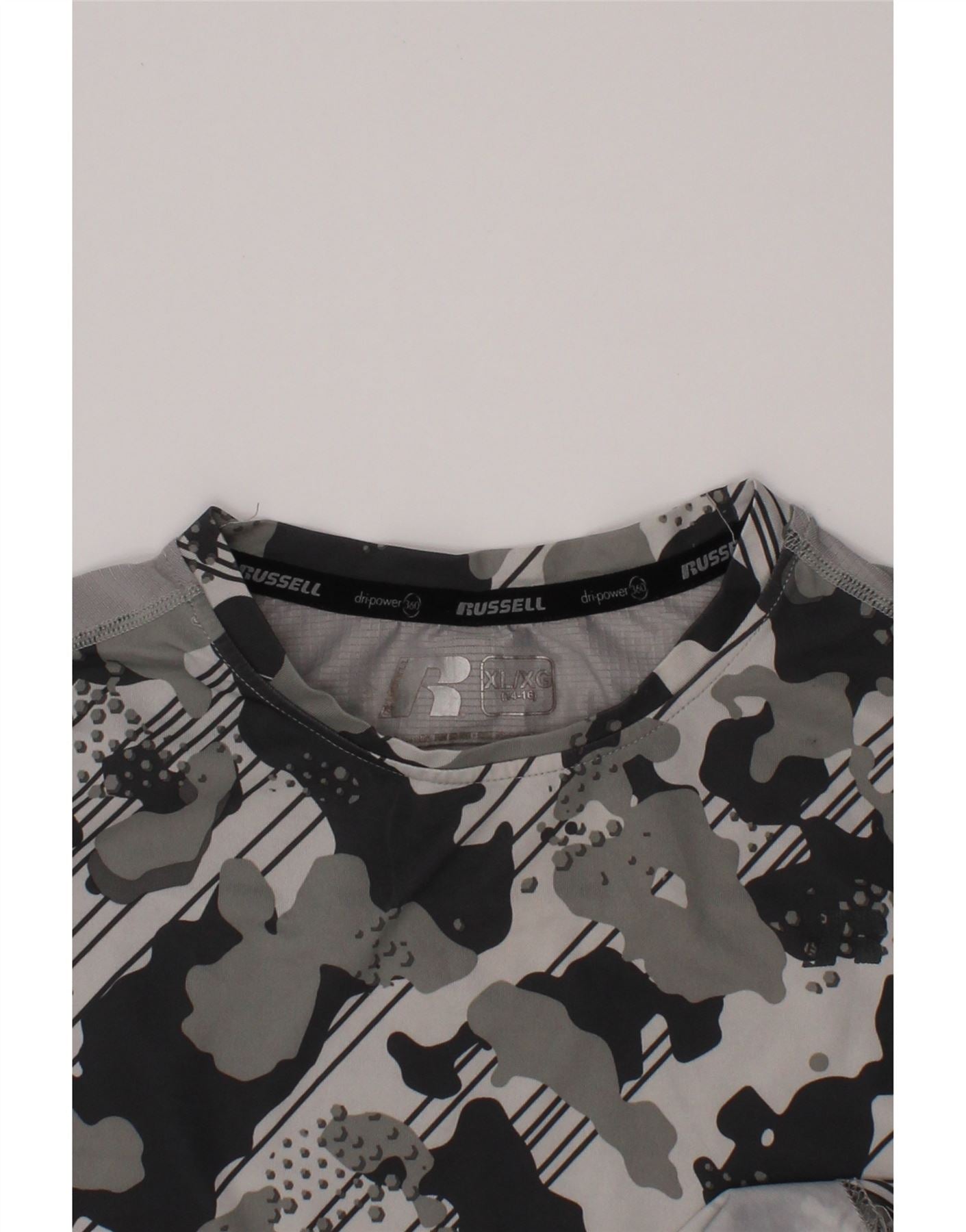 RUSSELL ATHLETIC Boys Dri-Power T-Shirt Top 14-15 Years XL Grey Camouflage