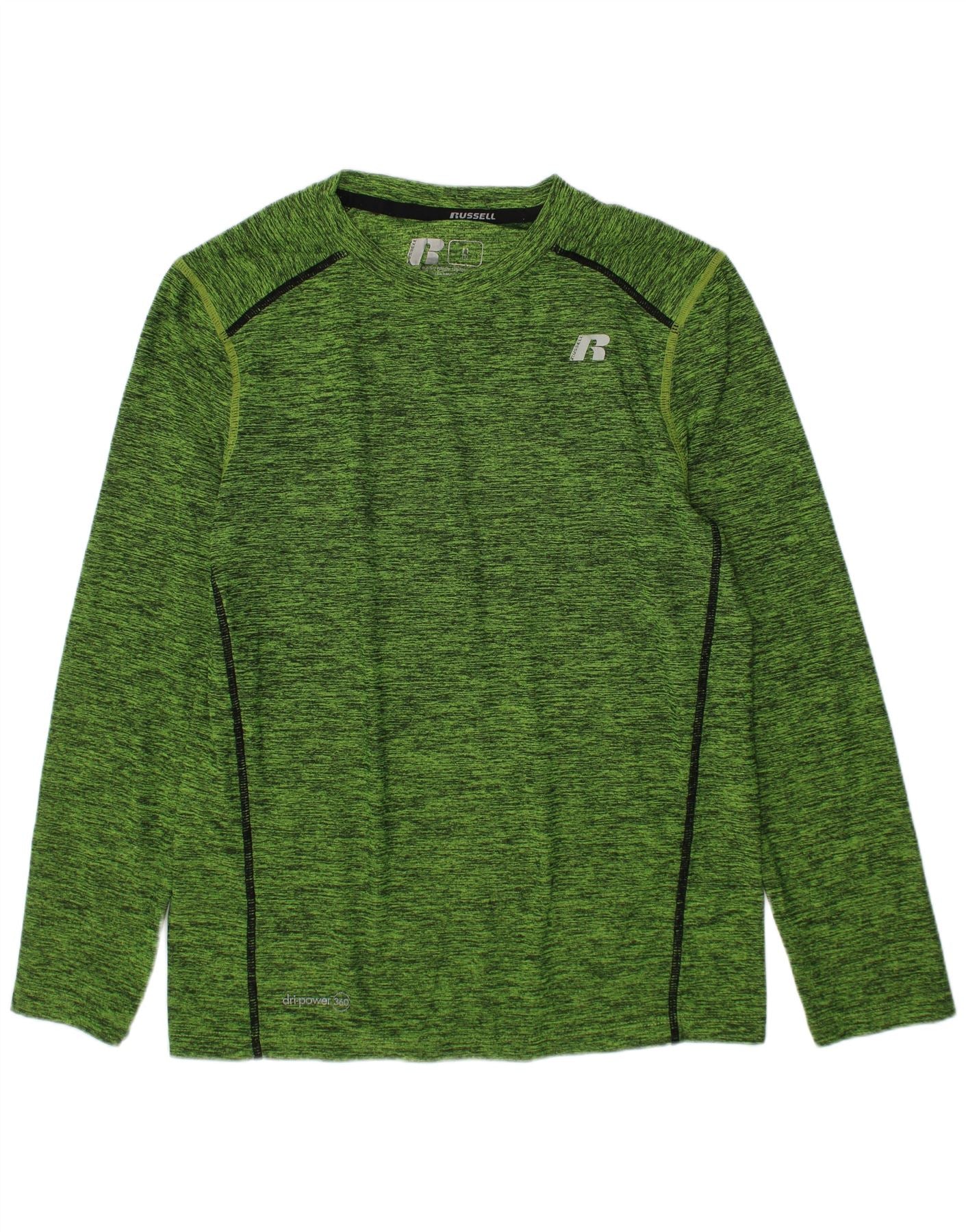 RUSSELL ATHLETIC Boys Dri-Power Top Long Sleeve 7-8 Years Medium Green