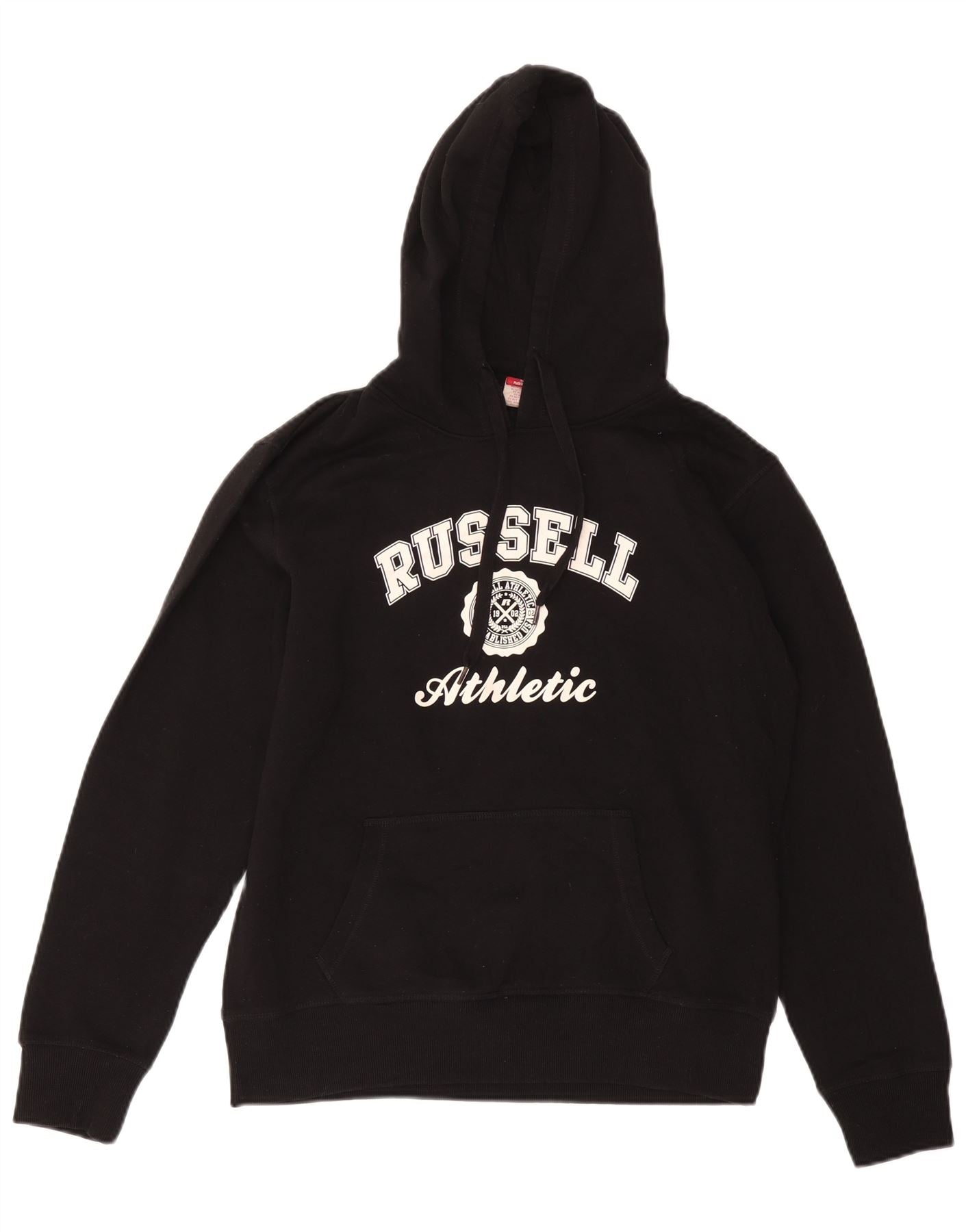 RUSSELL ATHLETIC Boys Loose Fit Graphic Hoodie Jumper 13-14 Years Black