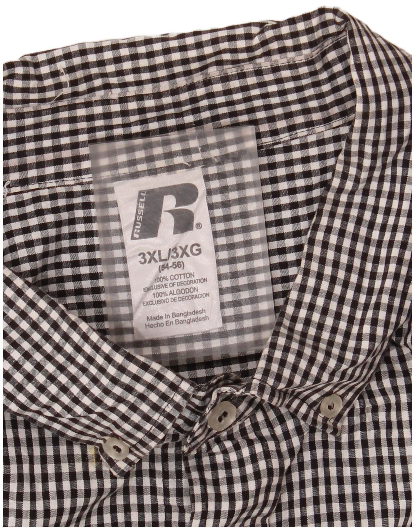 RUSSELL ATHLETIC Mens Arkansas Razorbacks Shirt 3XL Black Gingham Cotton