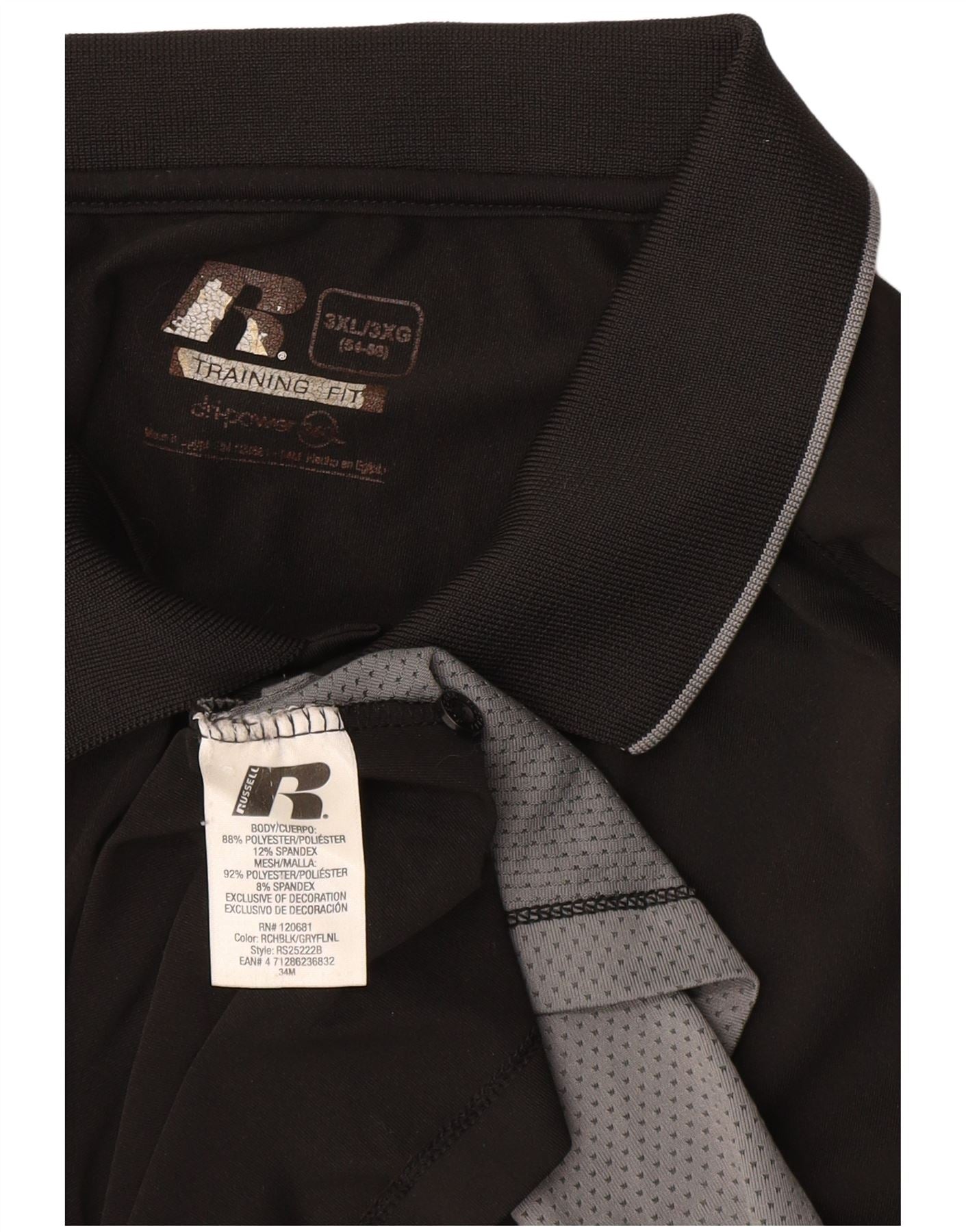 RUSSELL ATHLETIC Mens Dri-Power Polo Shirt UK 54/56 3XL Black Colourblock