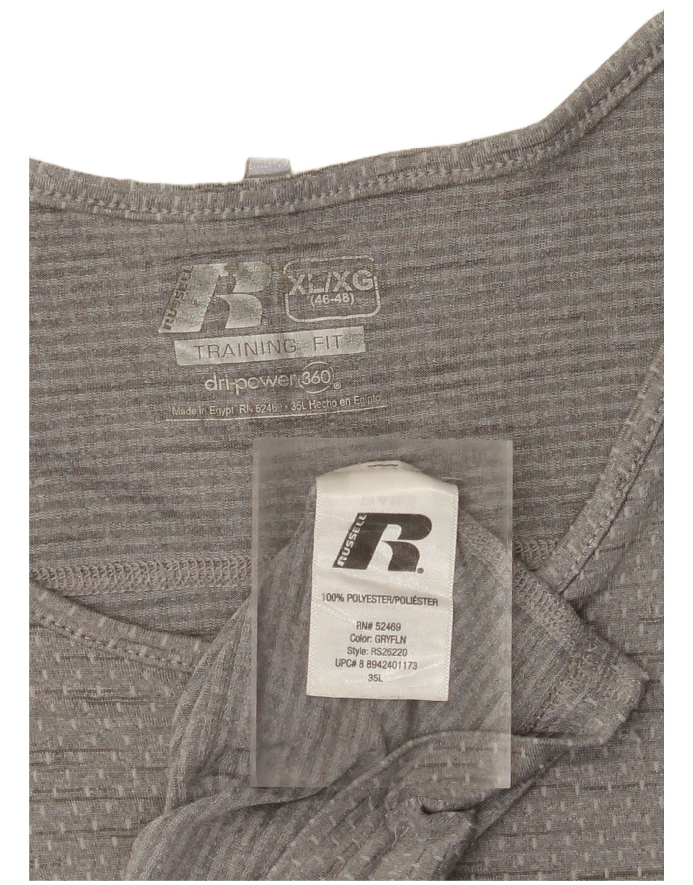 RUSSELL ATHLETIC Mens Dri-Power Vest Top UK 46/48 XL Grey Flecked