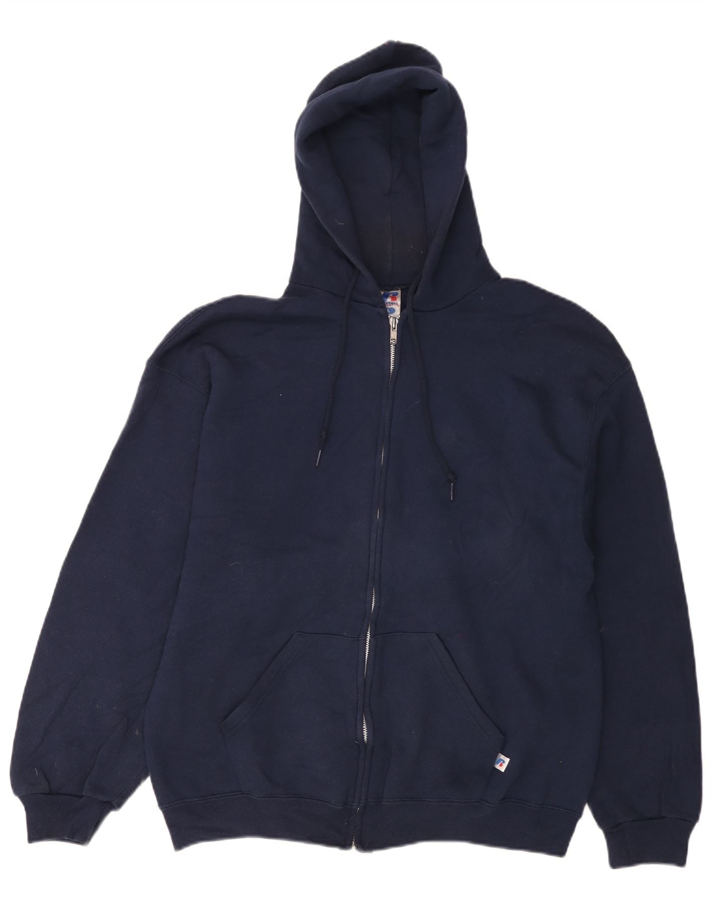 RUSSELL ATHLETIC Mens Dri-Power Zip Hoodie Sweater Large Navy Blue Cotton