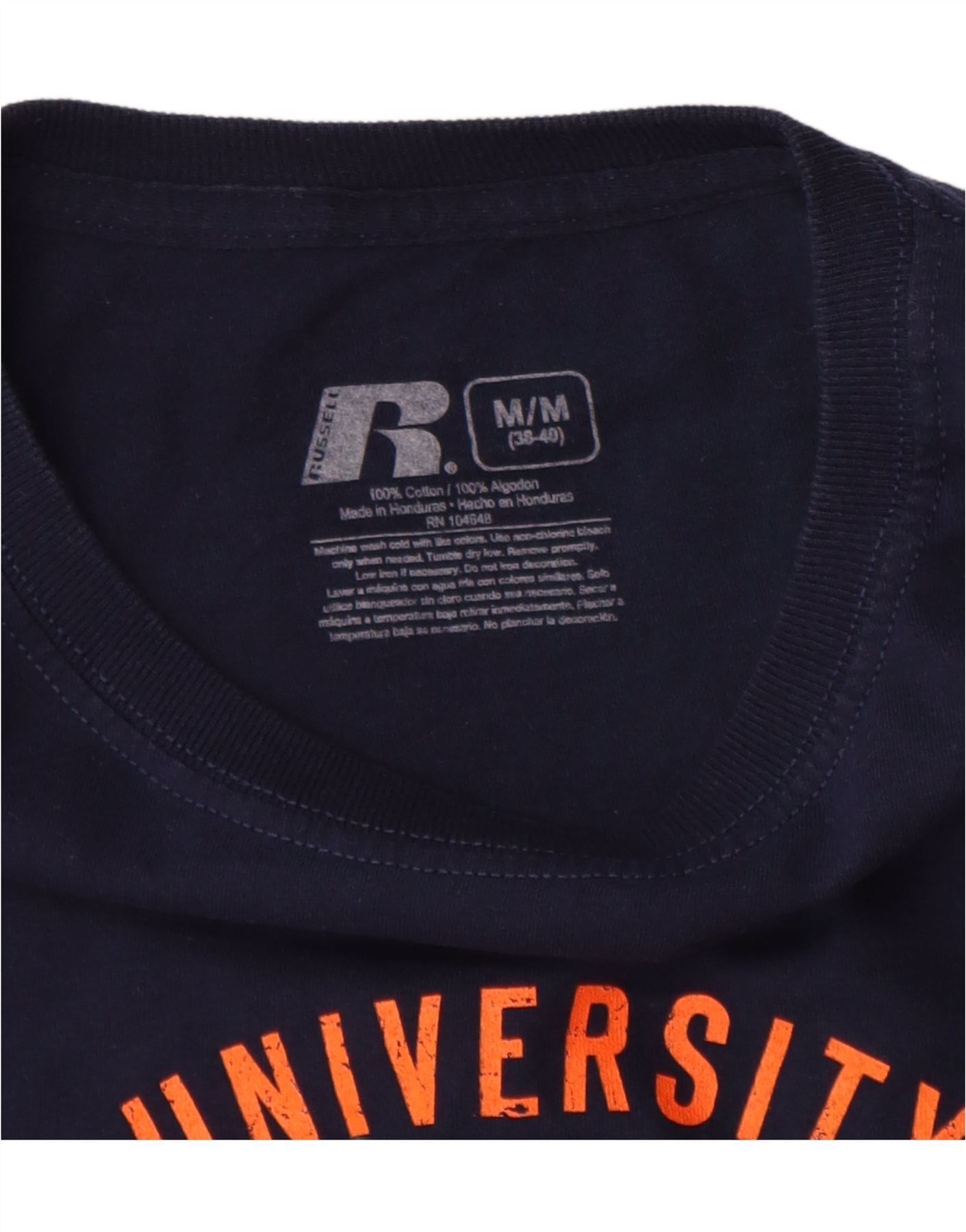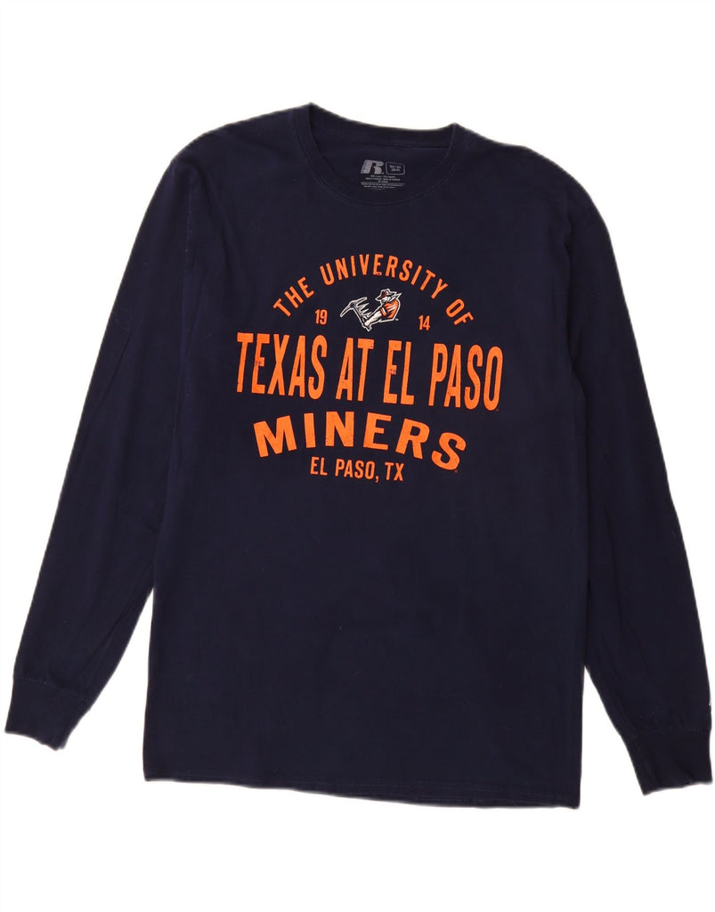RUSSELL ATHLETIC Mens Graphic Top Long Sleeve UK 38/40 Medium Navy Blue