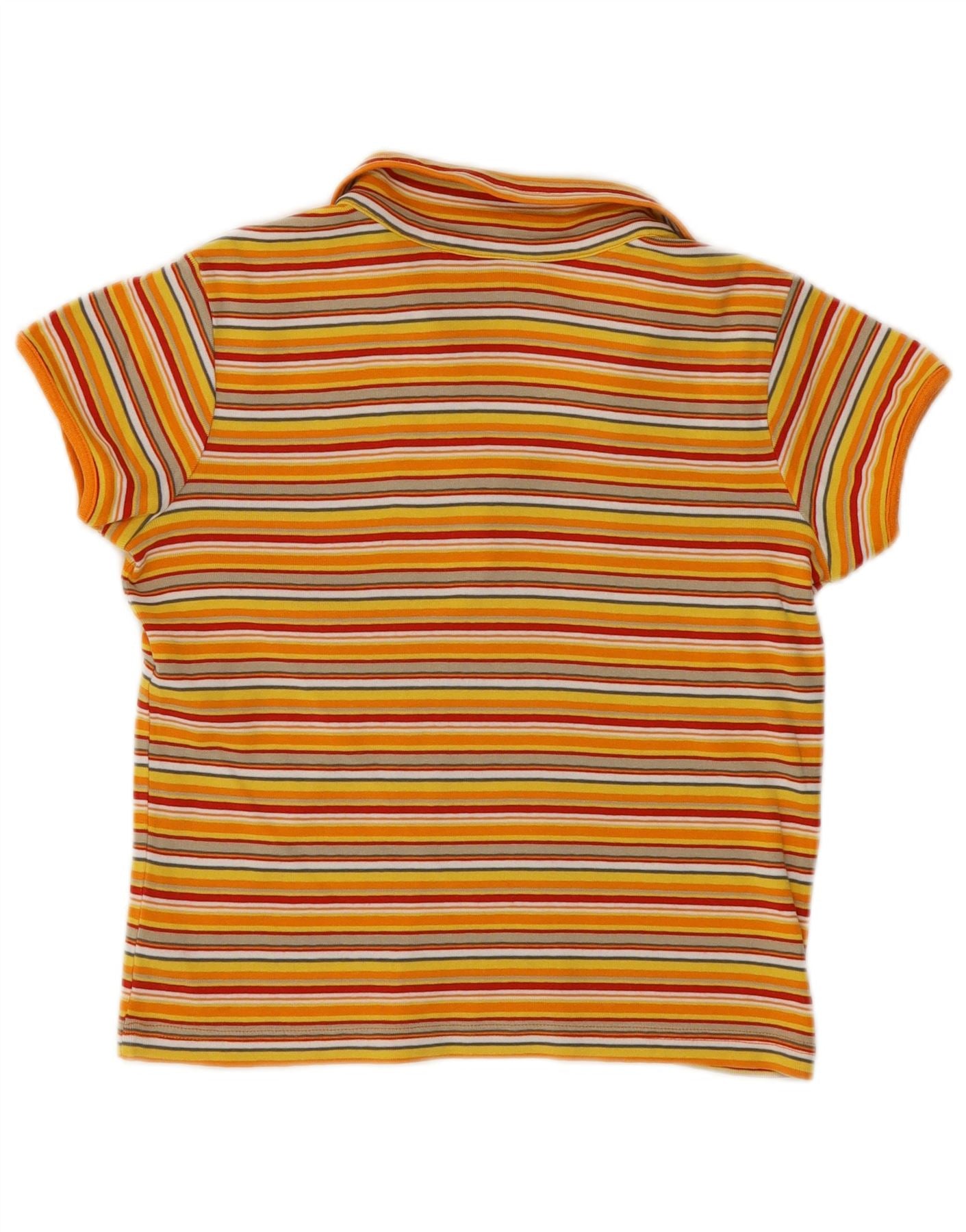 S.Oliver Womens Crop Polo Shirt UK 14 Large Yellow Striped Cotton